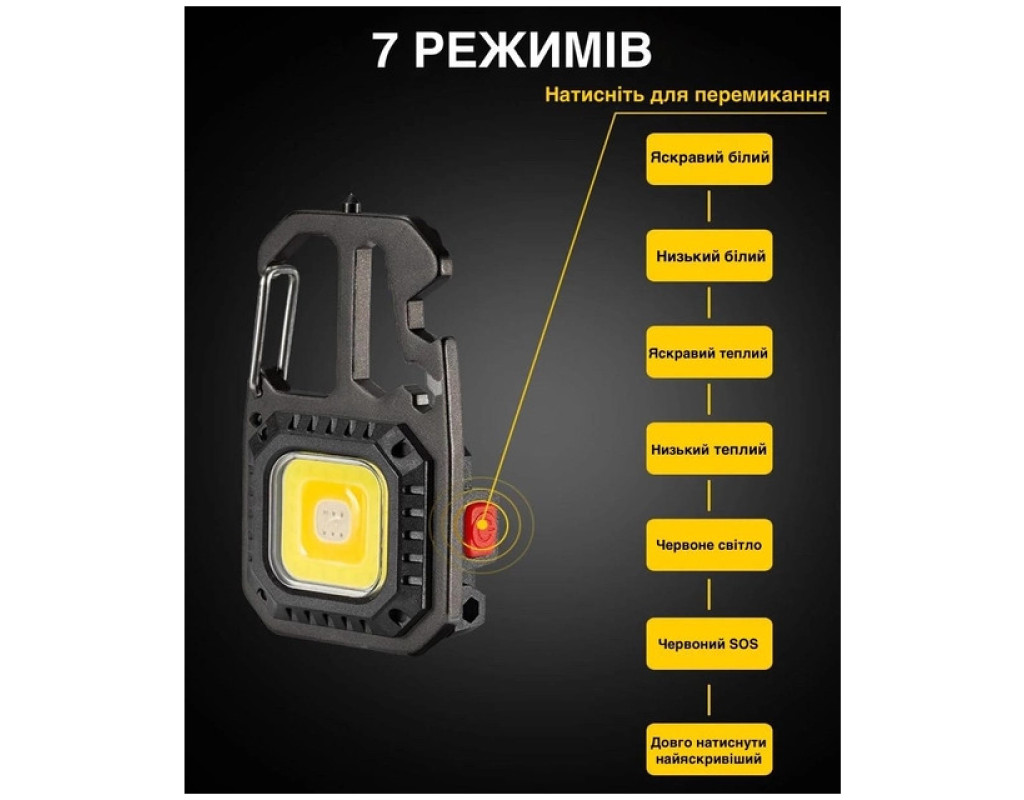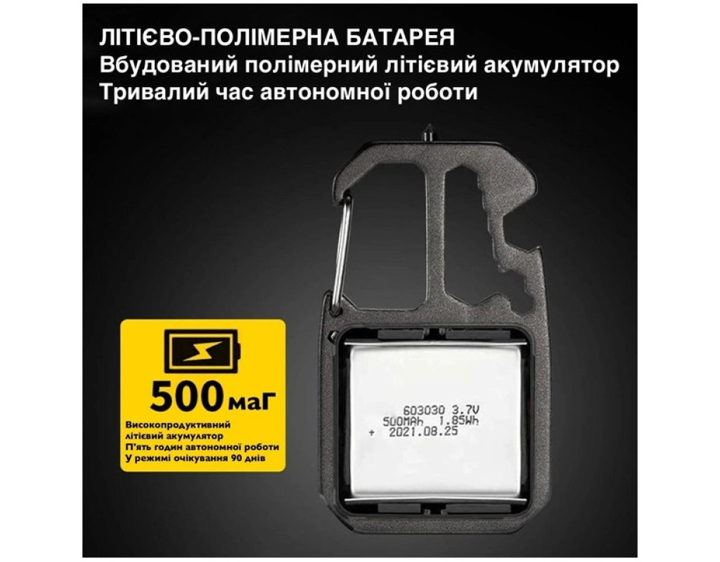 | Ліхтар Optima Mini Cob 700 (OP-Mini COB700) — це втілення сучасних технологій у компактному розмірі, що стане вашим вірним супутником у безлічі ситуацій, де потрібне якісне освітлення. Поєднання компактності та потужності робить його ідеальним для використання під час кемпінгу, риболовлі, прогулянок або навіть під час аварійних ремонтів. З потужністю в 500 люмен, цей маленький, але надійний ліхтарик гарантує, що темрява не зможе вас застати зненацька. Однією з його унікальних переваг є широкий спектр освітлювальних режимів. Optima Mini Cob 700 пропонує чотири варіанти: інтенсивне біле світло на 100%, економічний режим білого світла на 50%, приємне жовте світло та червоне світіння. Така функціональність дозволяє адаптувати освітлення до будь-яких умов і потреб, від яскравого освітлення робочої зони до створення затишної атмосфери. Ліхтар виготовлений із високоякісного металу, що забезпечує його вологонепроникність та пиловідштовхувальні властивості. Це робить його стійким до екстремальних умов використання, забезпечуючи вам надійне джерело світла навіть у найскладніших ситуаціях. Зі своїми компактними розмірами (80 мм довжини) і вагою лише 46 грамів, Optima Mini Cob 700 зручно носити у кишені або ж закріпити на зв’язці ключів, що дозволяє мати його завжди під рукою. Вбудований акумулятор із швидким зарядженням через micro USB забезпечує до 8 годин автономної роботи. Завдяки індикатору низького рівня заряду ви завжди будете знати, коли варто підзарядити ліхтар, щоб він завжди був готовий до роботи. Крім основного призначення, цей прилад має вражаючий набір додаткових функцій, які роблять його справжнім універсальним інструментом. Використовуйте відкривачку для пляшок, викрутку для швидких ремонтів, універсальний гайковий ключ для будь-яких ситуацій або склобій у випадках екстрених ситуацій. Завдяки гачку, що обертається на 360°, ви можете легко прикріпити ліхтарик у потрібному місці, створюючи оптимальні умови для освітлення робочої зони чи іншого середовища. Більше того, завдяки вбудованому гнізду для штатива, Optima Mini Cob 700 може бути встановлений у стаціонарну позицію, що робить його незамінним для тривалого використання в будь-яких умовах. Таким чином, цей ліхтар - не просто пристрій для освітлення, а справжній багатофункціональний гаджет, що поєднує в собі винахідливість і стиль сучасного дизайну. Насолоджуйтеся відчуттям безпеки з ліхтарем Optima Mini Cob 700, що забезпечує вам світло там, де ви його найбільше потребуєте. Він стане вашим незамінним помічником, готовим до будь-яких викликів, зберігаючи високу якість і надійність у кожній деталі. Не пропустіть шанс отримати цей інноваційний інструмент, що обов’язково стане важливою частиною вашого повсякденного життя. |