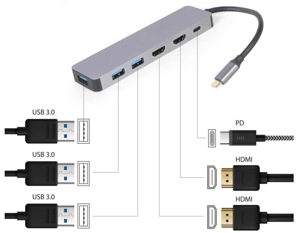 Тип - зовнішній, Інтерфейс підключення - USB Type-C, Вихідні роз'єми - 1 x USB Type C, 3 x USB 3.1, 2 x HDMI, Також шукають - для MacBook