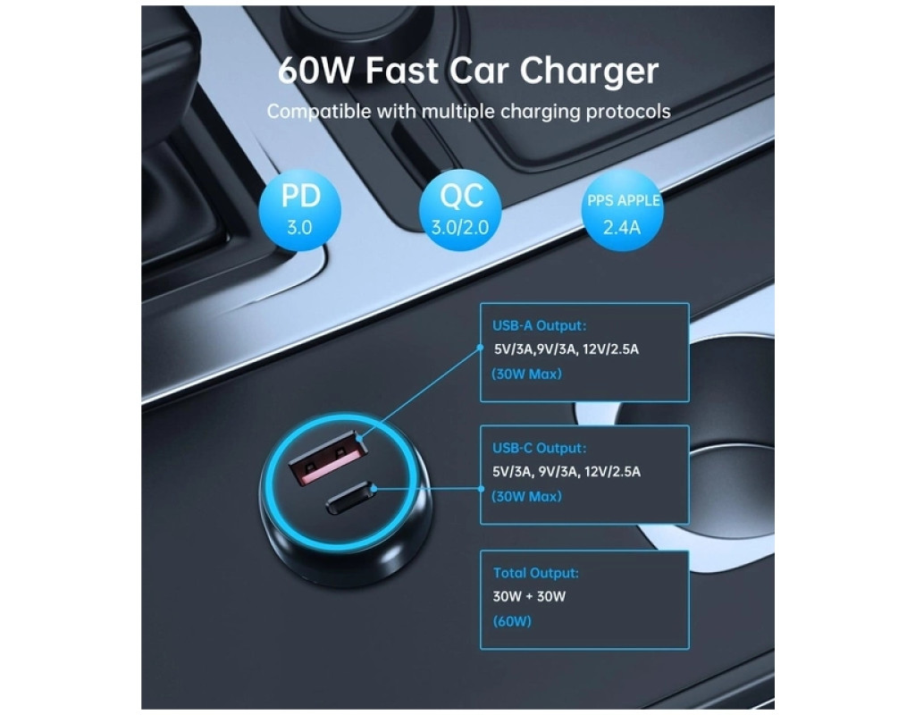 | Зустрічайте зарядний пристрій Choetech USB-C+USB-A 60W QC3.0/PD/PPS black (TC0014-BK) — ідеальний супутник для кожного автовласника, що бажає забезпечити своїм електронним пристроям швидку і безпечну зарядку. Цей універсальний адаптер дає змогу заряджати будь-які пристрої завдяки живленню від прикурювача автомобіля, перетворюючи вашу автівку на справжню зарядну станцію в дорозі. Основний акцент цього пристрою — подвійний вихід, що поєднує USB та USB Type-C роз'єми, дозволяючи вам одночасно заряджати два пристрої, не втрачаючи швидкості. З максимальним вихідним струмом 3 А і потужністю 60 Вт, Choetech TC0014-BK надає змогу заряджати навіть енерговимогливі пристрої на повну потужність. Ця модель підтримує передові технології швидкої зарядки: Quick Charge 3.0, Programmable Power Supply (PPS) та Power Delivery. Це гарантує оптимальну подачу струму, адаптовану до вимог кожного підключеного пристрою, що робить зарядку не лише швидкою, але й безпечною. Завдяки вбудованим передовим системам безпеки, ви можете бути впевнені у захисті вашої електроніки від перевантажень та коротких замикань. Окрім функціональності, Choetech USB-C+USB-A 60W має стильний, компактний дизайн у чорному кольорі, що чудово поєднується з інтер’єром авто. Виберіть Choetech для надійного, швидкого та ефективного заряджання ваших улюблених ґаджетів у дорозі. Це інвестиція в якість та технологічність, яка точно варта уваги. |