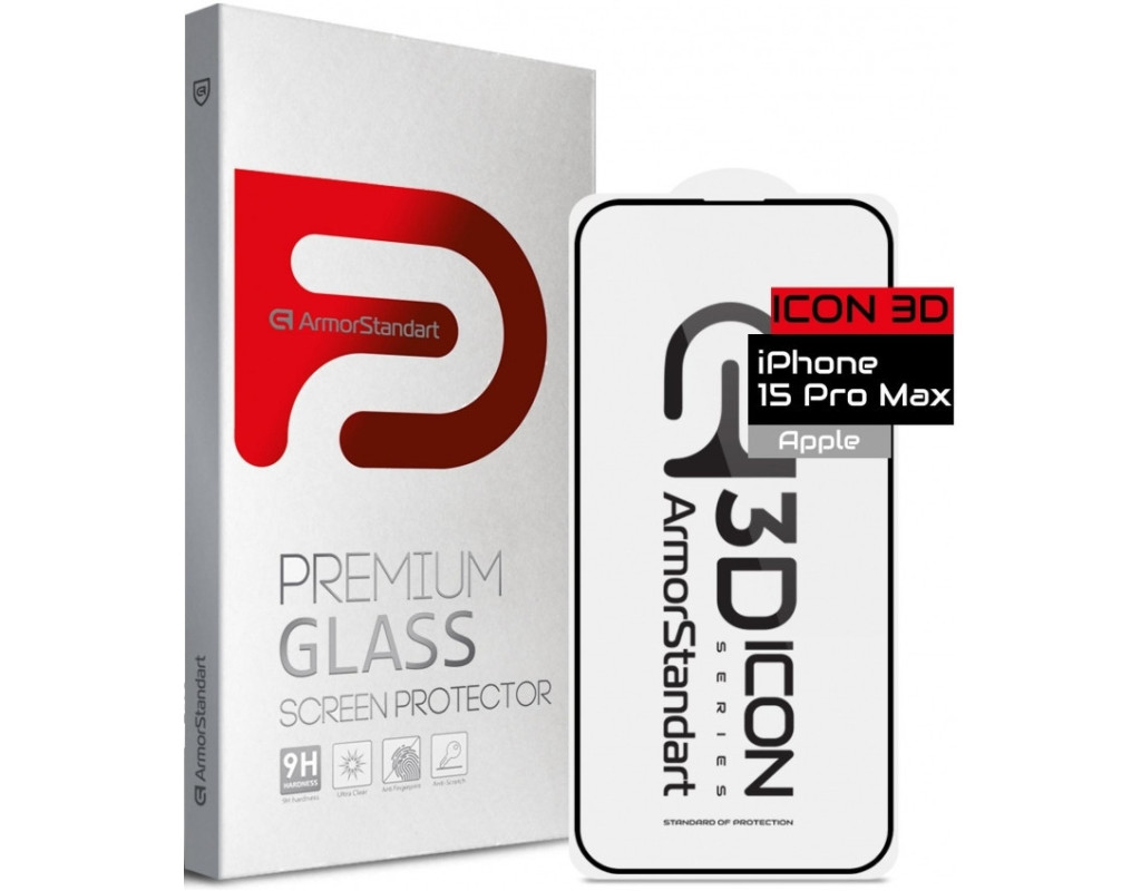 Скло захисне Armorstandart Icon 3D Apple iPhone 15 Pro Max Black (ARM68216)