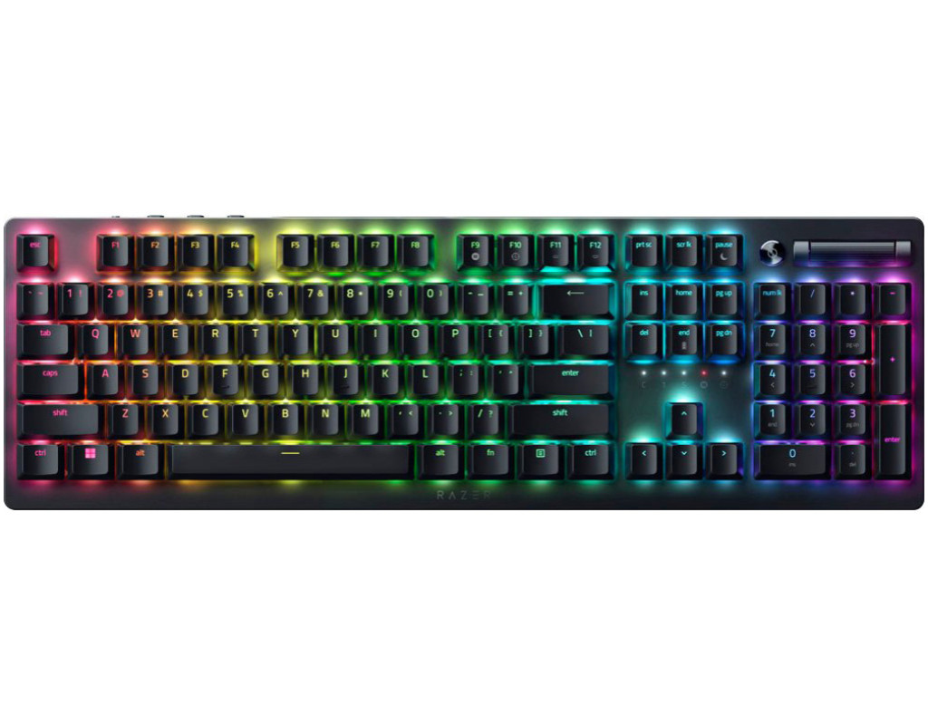 | Клавіатура Razer DeathStalker V2 Pro Wireless Red Switch UA Black (RZ03-04360800-R3M1) - це справжній шедевр серед ігрових аксесуарів, який стане незамінним інструментом для кожного геймера, що шукає високу продуктивність та вишуканий дизайн. Завдяки ультратонкому корпусу та міцній конструкції ця клавіатура привертає увагу не лише своєю естетикою, а й винятковою функціональністю. Ключовою особливістю Razer DeathStalker V2 Pro є її механічна конструкція, що використовує найновіші низькопрофільні перемикачі Razer™ Low-Profile Linear Optical Switches. Завдяки цим перемикачам, ви отримаєте швидкий відгук, що дозволяє реагувати на зміни в грі з неймовірною точністю. Кожне натискання стане точним і чутливим, забезпечуючи вас перевагою у віртуальних баталіях. Універсальні можливості підключення дозволяють насолоджуватися бездротовою свободою завдяки технологіям Razer™ HyperSpeed та Bluetooth, або ж скористатися дротовим з'єднанням через USB, для ще більшої впевненості в стабільності підключення. Це робить клавіатуру гнучкою у використанні, незалежно від ситуації чи навколишніх умов. Окремої уваги заслуговує RGB підсвічування, яке ви можете налаштувати під свій настрій або ігрове середовище. Воно додає стилю вашому робочому столу, перетворюючи його на справжній центр управління. Крім того, підтримка англійської та української розкладки робить цю клавіатуру універсальною для користувачів різних країн. Завдяки повнорозмірному формату ви маєте під рукою всі необхідні клавіші, що робить роботу зручною та ефективною. Клавіші, які програмуються, додають ще більше можливостей для персоналізації вашого досвіду. Не варто забувати про зручне колесо прокрутки, яке спрощує навігацію, дозволяючи розширити вашу продуктивність під час роботи або гри. Обравши клавіатуру Razer DeathStalker V2 Pro, ви отримуєте не просто аксесуар, а надійного партнера у всіх ваших ігрових та робочих завданнях, що поєднує швидкість, стиль і функціональність в єдиному пристрої. |