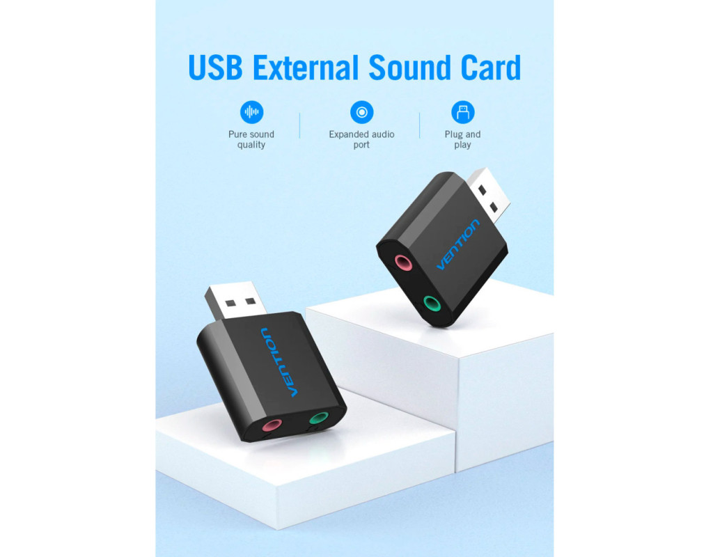 Звукова карта Vention USB Sound Card 2.0 Channel, Black (VAB-S17-B) - універсальний USB аудіо адаптер для підключення навушників або дротових гарнітур до комп'ютера або ноутбука через порт USB. Звукова карта не потребує драйверів і сумісна з усіма комп'ютерами та ноутбуками. Використання адаптера є актуальним для комп'ютерів, в яких не вбудована власна звукова карта. |