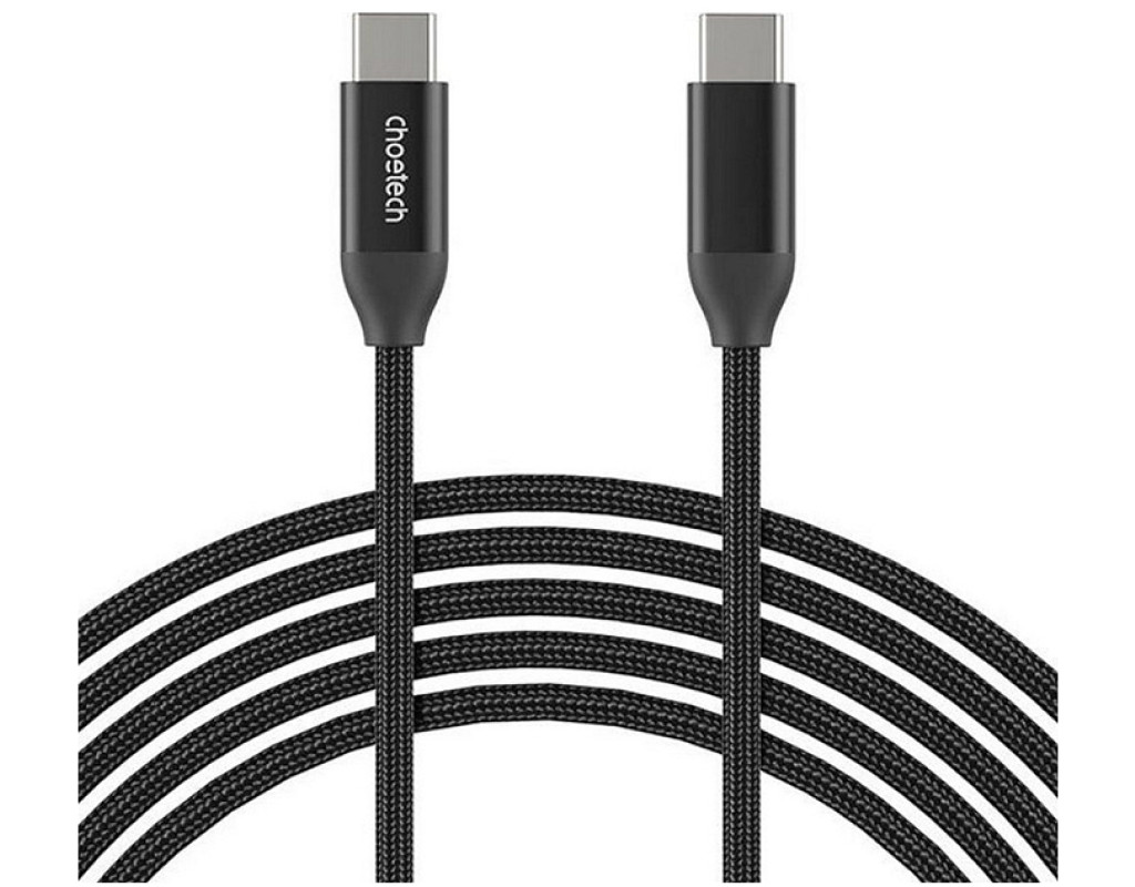 П’ятижильний мідний кабель екранований алюмінієвою фольгою та обплетений міцною нейлоновою ниткою чорного кольору. Він забезпечує безперебійну передачу сигналу, є дуже гнучким та не ламається на згинах. Довжина кабелю Choetech USB 2.0 Type-C M-M – 2,0 м.