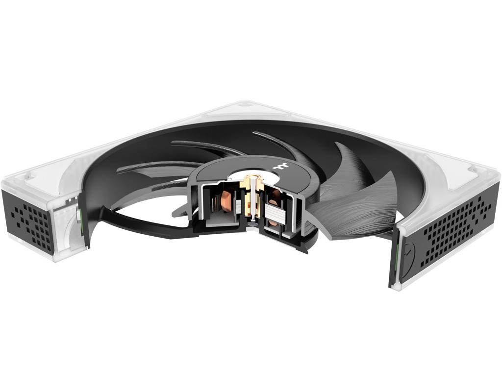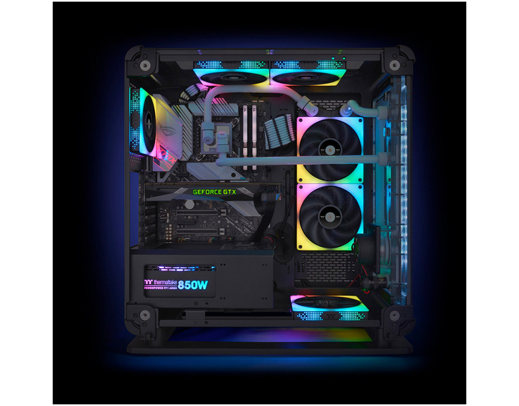 Thermaltake Toughfan 12 RGB — яскравий та компактний кулер для корпусу. Він покликаний видувати гаряче повітря, тим самим охолоджуючи внутрішні компоненти ПК. Виріб дуже тихий, оскільки оснащений прогумованими вставками, які не дають вентилятору вібрувати під час активної роботи. Швидкість обертання змінюється від 500 до 2000 об/хв. Вентилятор має широкі лопаті, які захоплюють велику кількість гарячого повітря. Виготовлений кулер зі зносостійкого пластику. Кулер має унікальне рівномірне підсвічування рамки яке забезпечують 24 адресних світлодіоди, які здатні видавати палітру 16.8 млн. кольорів. Toughfan 12 RGB додає більше індивідуальності до серії Toughfan і надає більше можливостей для персоналізації вашої збірки. Завдяки ШІМ управлінню, швидкість обертання лопатей буде змінюватися в залежності від завантаженості комп'ютера. |