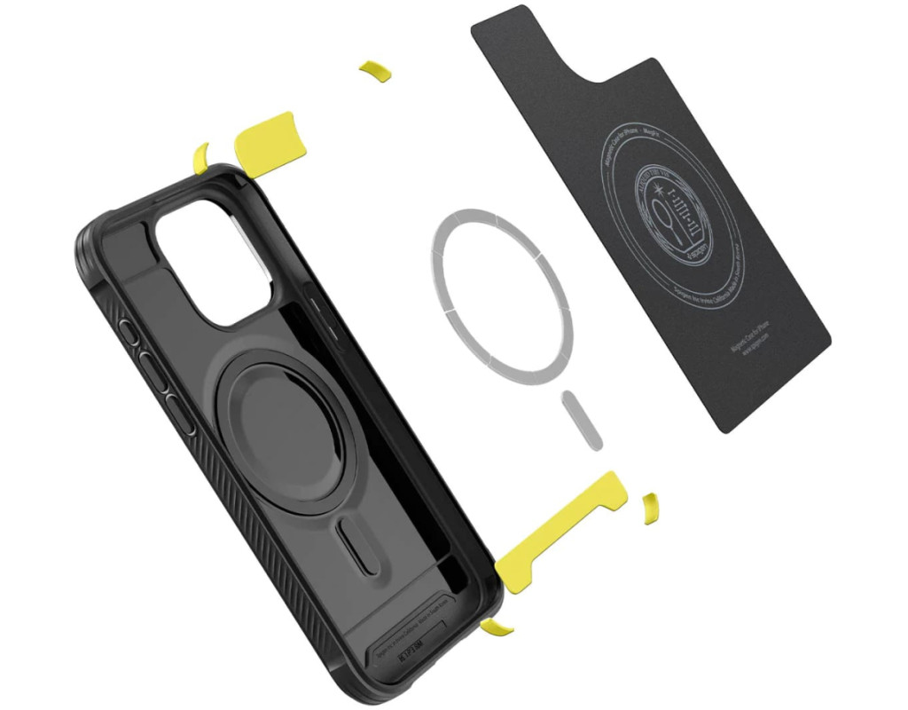 | Міцний і вишуканий. Rugged Amor MagFit святкує десятиріччя захисту з абсолютно новим дизайном для вашого iPhone. Сучасні деталі з вуглецевого волокна витончено виблискують, а багатошаровий бампер захищає всі кути. Готовий до роботи з сильнішими магнітами для MagSafe. Готовий витримати удар. |