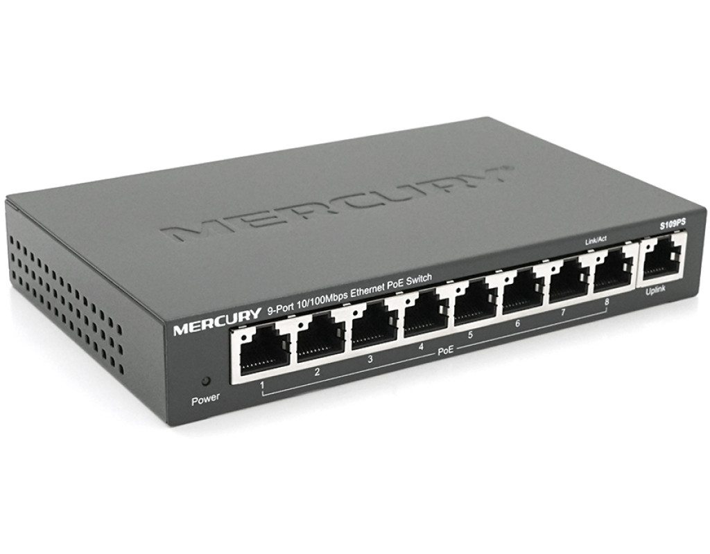 | Комутатор POE 48V Mercury S109PS 8 портів POE + 1 порт Ethernet (Uplink) 10 / 100 Мбіт / сек, БП в комплекті, BOX Q200 (258 * 196 * 66) 0,72 кг (158 * 99 * 25) |