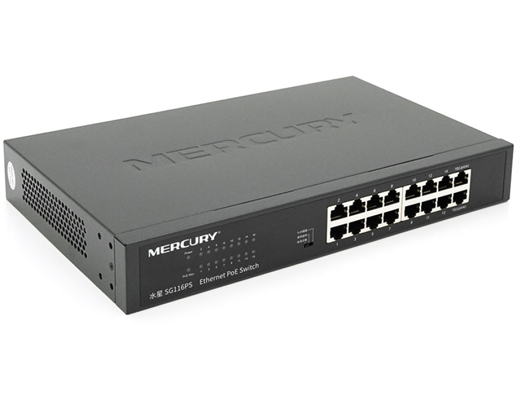 | Комутатор POE Mercury SG116PS 14 портів POE 100Мбит + 2 порт Ethernet (UP-Link) 100 Мбіт, БП вбудований, кріплення в стійку, BOX (294 * 180 * 44) |