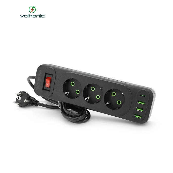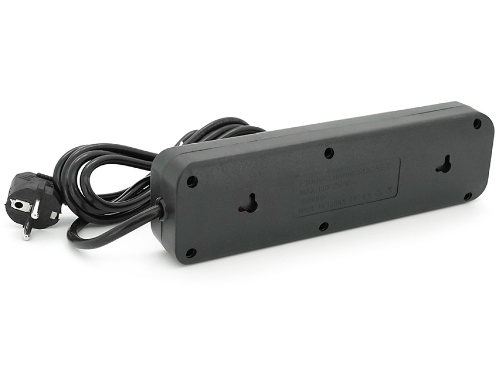 | Мережевий фільтр F23U, 3 розетки EU +3 USB + PD, кнопка включення з індикатором, 2 м, 3х0,75мм, 2500W, Black, Box |