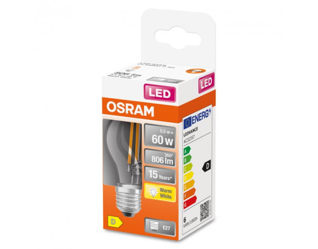OSRAM LED CL P60 5,5W/827 230V FIL E27 6X1