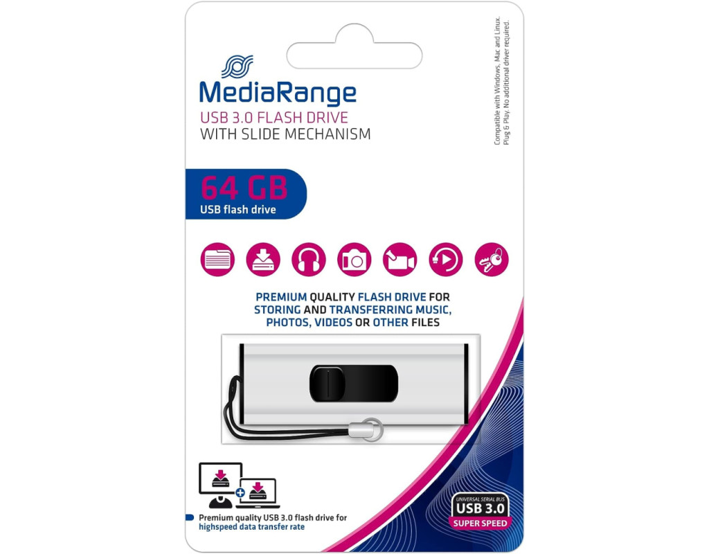 Флеш-накопичувачі MediaRange - це якість і надійність. Ці USB-накопичувачі ідеально підходять для швидкого архівування та обміну даними. USB-з'єднання дозволяє отримати доступ до даних безпечно та зручно - будь-де та будь-коли. Компактні USB-накопичувачі легко носити з собою, тому ваші дані завжди будуть під рукою. |