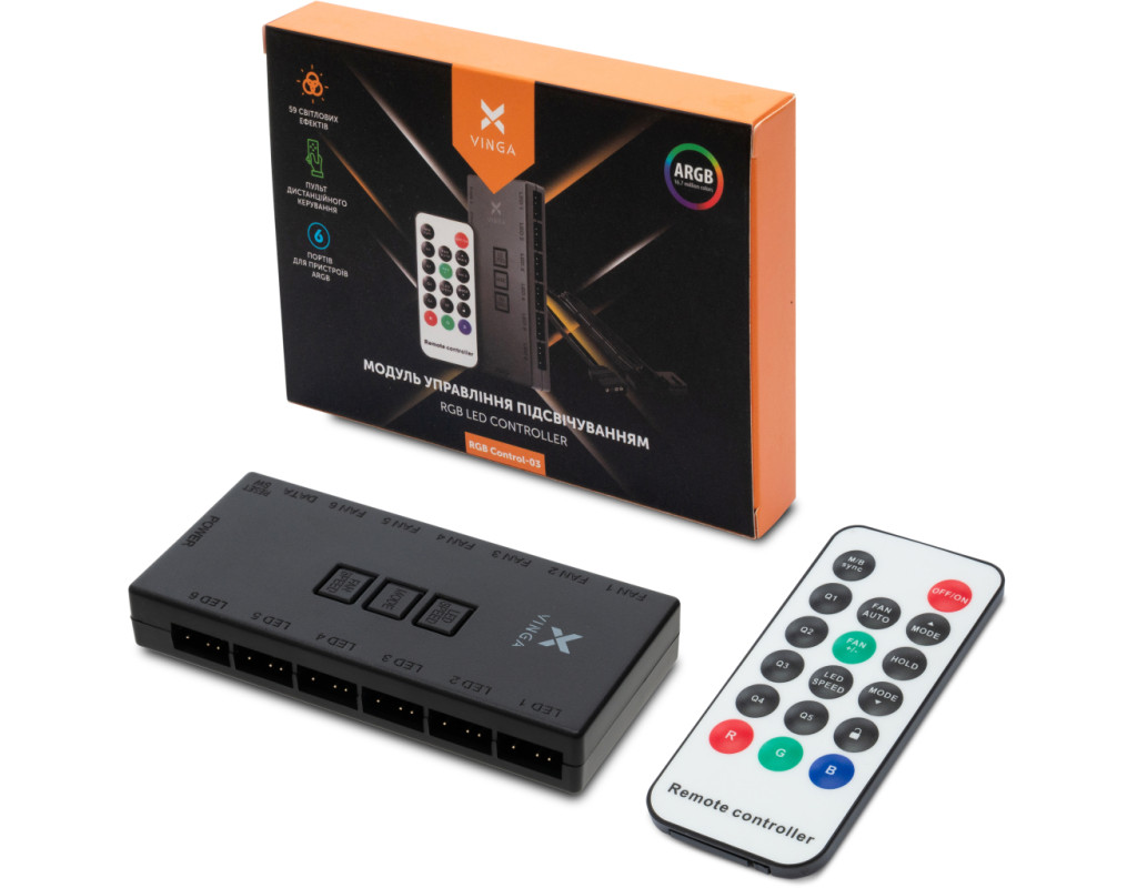 Модуль управління підсвічуванням Vinga RGB control-03 для RGB fan-07, fan-08, fan-09, fan-10, fan-11 |