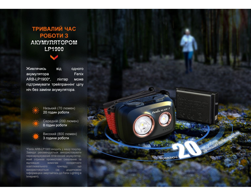 | Ліхтар Fenix HL32R-T Blue (HL32R-TBL) – ваш незамінний партнер для активних пригод та щоденних викликів, що забезпечує максимум функціональності і зручності. Цей налобний ліхтар поєднує в собі передові технології та ергономічний дизайн, що робить його ідеальним вибором для трейлраннерів, туристів та всіх, хто віддає перевагу активному способу життя. Обладнаний потужним світлодіодом Luminus SST20 з колірною температурою 6500К, Fenix HL32R-T сяє яскравістю до 800 люменів. Така інтенсивність світла здатна освітити територію на відстані до 132 метрів, забезпечуючи відмінну видимість навіть у найтемніших умовах. Конструкція з міцного та легкого магнієвого сплаву підвищує надійність та довговічність корпусу, а його вага всього в 107 грамів робить носіння ліхтаря комфортним протягом тривалого часу. Інноваційний датчик частоти кроку, вбудований у HL32R-T, автоматично регулює яскравість залежно від швидкості руху. Завдяки цьому ви отримаєте оптимальне освітлення без зайвих зусиль: при швидких кроках яскравість може збільшуватися до 300 люменів, що ідеально підходить для активних пробіжок або походів у горах. Це робить ліхтар не тільки зручним, а й розумним вибором на кожен день. Виберіть з семи режимів освітлення той, який відповідає вашим потребам: від максимального до SOS-режиму. Завдяки цьому ви зможете адаптувати освітлення під будь-які умови, від далекого маршруту до освітлення найближчих об'єктів. Індикатор низького заряду завчасно повідомить вас про потребу в зарядці, забезпечуючи безперервну роботу. Різноманітність джерел живлення додає універсальності: ви можете використовувати як акумуляторний блок Li-Ion ARB-LP1900 (входить у комплект), так і звичайні батарейки AAA. Сучасний порт USB Type-C гарантує швидке та зручне заряджання, а індикатори рівня заряду допоможуть контролювати ресурс батареї в будь-який момент. Завдяки високому класу захисту IP66, ліхтар Fenix HL32R-T не боїться складних погодних умов і забезпечує захист від пилу і вологи. Міцність конструкції підтверджується здатністю витримувати падіння з висоти до 2 метрів, що робить його надзвичайно надійним. Ергономічне налобне кріплення з унікальним механізмом регулювання довжини забезпечує зручну фіксацію на голові. Ви можете налаштувати його однією рукою, що дозволяє зосередитися на русі та активно взаємодіяти з навколишнім середовищем. Це гарантує, що ліхтар залишиться на місці навіть при найінтенсивніших навантаженнях. У комплект поставки входить усе необхідне для використання: сам ліхтар, акумулятор, кабель USB Type-C, інструкція та гарантія. Завдяки передовим характеристикам та інноваційним рішенням, Fenix HL32R-T стає не лише практичним, але й невід'ємним компонентом вашого активного стилю життя, забезпечуючи світло на вашому шляху у будь-яких обставинах. |