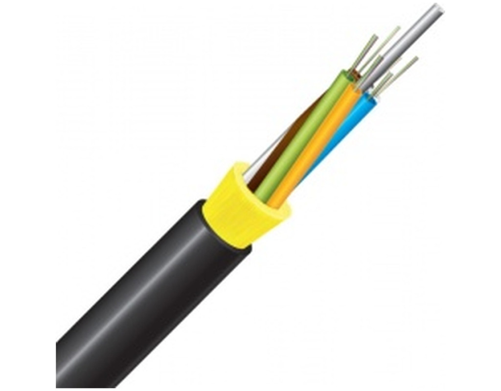 Призначення: Для підвісу на опорах ліній зв'язку, міського електротранспорту, між будинками і іншими об'єктами. Повністю діелектрична конструкція дозволяє підвішувати кабель на опорах контактної мережі електротранспорту або ліній електропередачі у разі наведеного потенціалу електричного поля в точках підвісу не більше 12 кВ. Дві модифікації кабелю - з допустимим розтягуючими зусиллям 2,7 кН - передбачені для різних умов підвісу кабелю. Невеликі габарити та вага дозволяють також затягувати (або задувати) кабель в пластикові захисні трубки. Конструкція: Кабель з 6-12 оптичними модулями, навитими навколо діелектричного центрального силового елемента, в яких може розташовуватися до 144 оптичних волокон. Усередині модулів знаходиться гідрофобний гель. Для запобігання поздовжньому поширенню вологи між модулями розташовані вологозахисні волокна. Поверх сердечника кабелю розташований шар зміцнюючих арамідних (кевларових) волокон, що забезпечує достатню стійкість до розтягуючих зусиль при невеликому діаметрі і вазі. Оболонка кабелів для зовнішнього використання виготовлена з УФ-стабілізованого поліетилену високої щільності. Повністю діелектрична конструкція кабелю виключає будь-які електромагнітні впливи на кабель, відпадає необхідність вирішення питань заземлення і електробезпеки в процесі монтажу і експлуатації. У кабель закладається оптичне волокно, яке відповідає вимогам ITU-T G.652.D. |