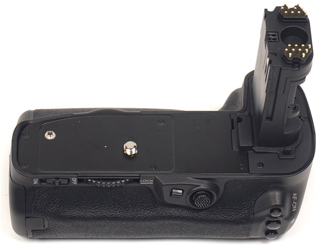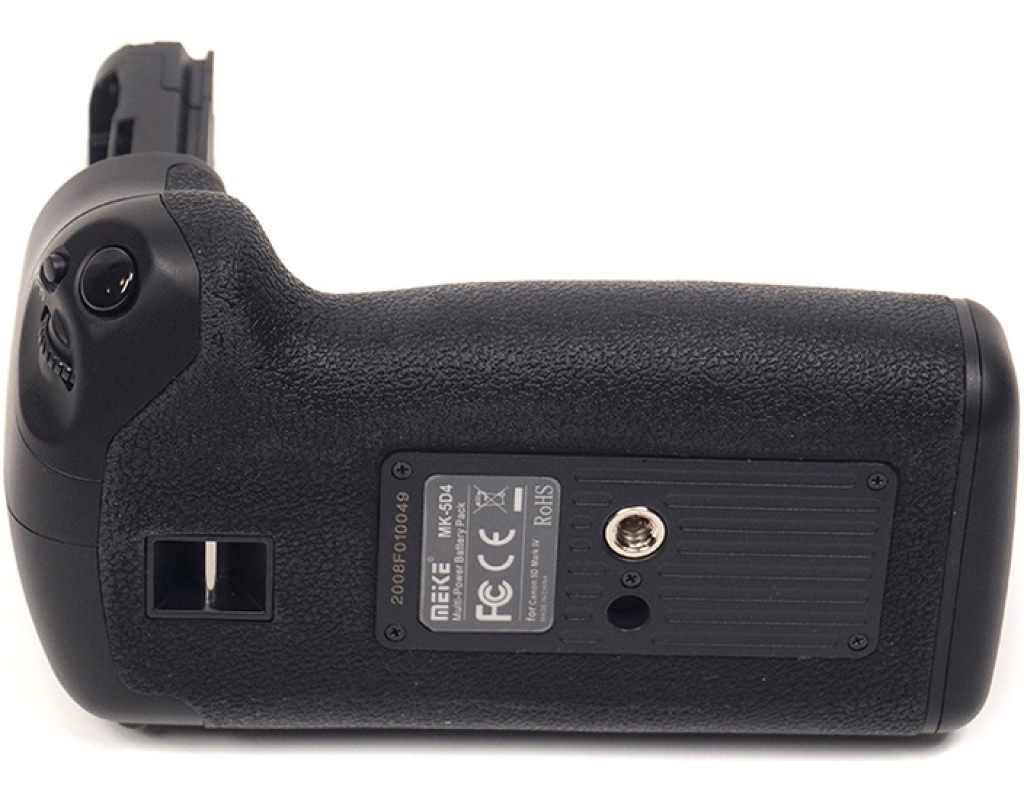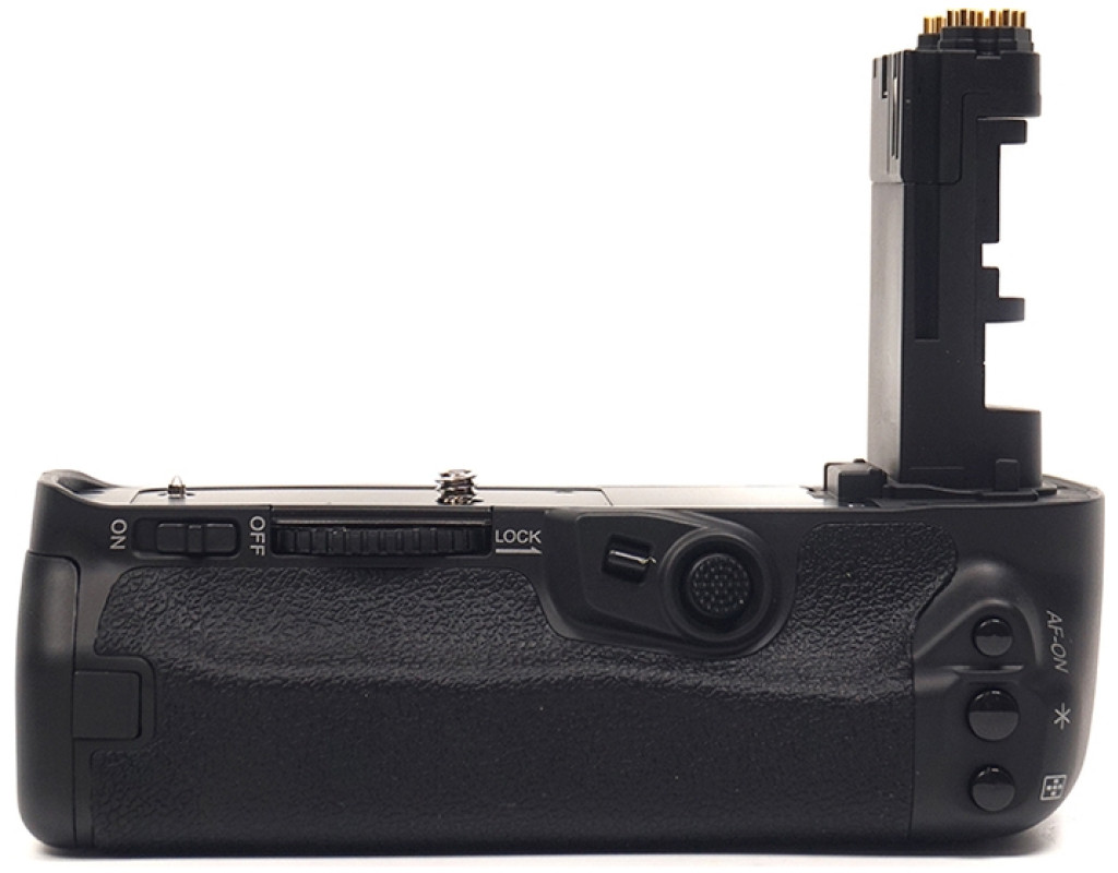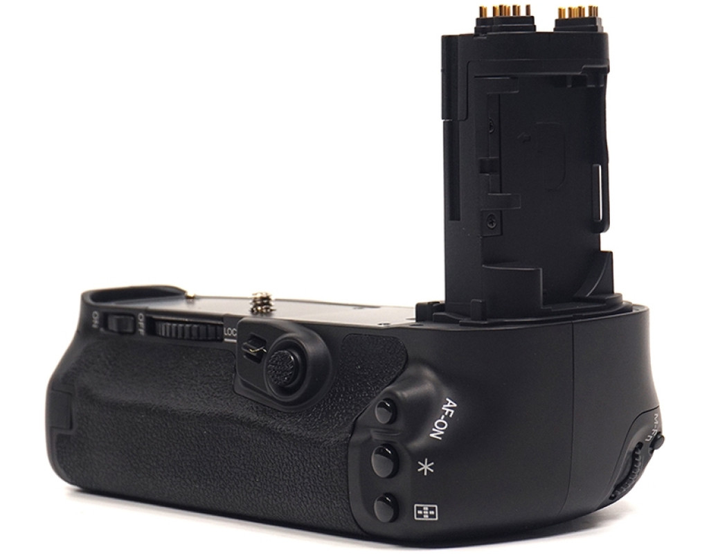 Батарейний блок Meike Canon 5D Mark IV для фотоапаратів Canon. Корпус акумуляторного блока та прогумовані вставки мають ту ж фактуру, що й фотоапарат, завдяки чому не порушується загальний вид. Ергономічна конструкція ручки батарейного блока дає змогу більш зручно тримати фотокамеру під час знімання у вертикальному положенні. Як джерело живлення блоку Canon використовуються дві спеціальні акумуляторні батареї LP-E6. Для зручності знімання вертикальних кадрів на ручці розташовані додаткова спускова кнопка затвору, кнопки АЕ lock/FE lock/AF point selection, кнопка включення автофокусу, а також диск керування. Є вбудований роз'єм для кріплення штатива. Батарейний блок для Canon незамінний для фоторепортерів, фотографів на весіллях, яким дуже важливо не проґавити гарний кадр через розряджений акумулятор. Крім того, камери Canon EOS 5D Mark IV з батарейним блоком мають набагато солідніший вигляд. Комплект постачання: