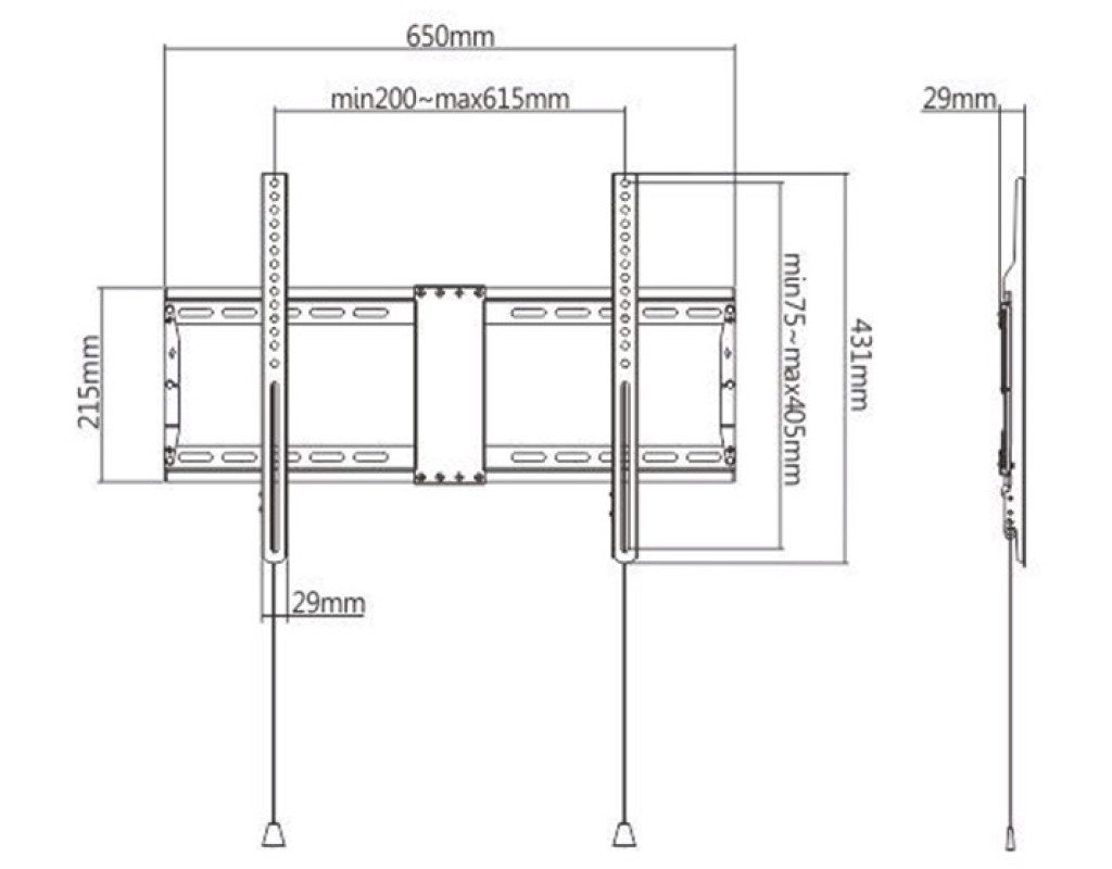 Підтримує більшість РК-телевізорів з діагоналлю від 37 до 80 дюймів Автоматичні пружинні замки зі швидкознімними шнурами для легкої установки Сумісність із VESA, макс. 600 мм х 400 мм Відстань до стіни: 29 мм Включає всі необхідні монтажні матеріали |