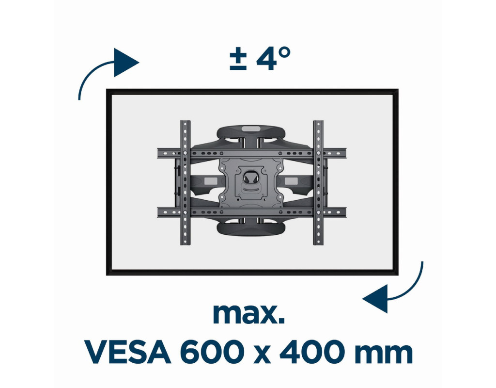 Підтримує більшість LCD/LED-телевізорів з діагоналлю 32-75 дюймів Сумісність із VESA, макс. 600 мм х 400 мм Відстань до стіни 49-491 мм Дозволяє повертати на 100 градусів та нахиляти на 13 градусів Практичні кріплення для кабелю У комплект входять усі необхідні монтажні матеріали |
