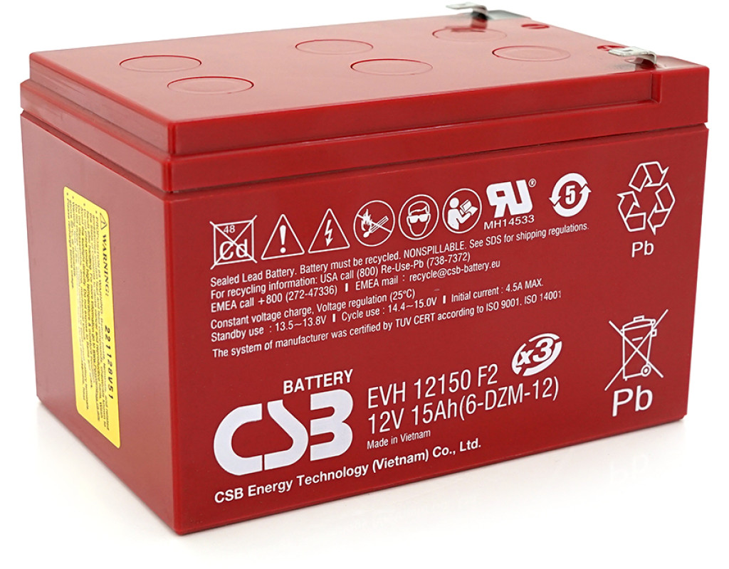 | Акумуляторна батарея EVH12150 – використовується у пристроях з невеликим споживанням енергії. Тому необхідно подбати про якісний акумулятор для забезпечення надійної, довгострокової роботи пристроїв. Застосування: • джерела безперебійного живлення • у телекомунікаціях та промообладнанні; • у системах резервного освітлення • у складі систем відеоспостереження, сигналізації, контролю доступу • у мережах пожежно-охоронних автоматизованих комплексів Характеристики: • кількість елементів: 6 • тип клем - F2 • тип батареї – AGM • напруга – 12 V • ємність - 15Ah • максимальний струм розряду – 180 А • максимальний зарядний струм – 4.5 A • внутрішній опір: 11 мОм • напруга заряду в циклічному режимі – 14,4 В ~ 15 В при 25 °С • напруга заряду в буферному режимі – 13,5 В ~ 13,8 В при 25 °С • номінальний діапазон робочих температур: 25°C • розміри пристрою (ДхШхВ) – 151х98х97 мм • вага – 4,6 кг (Допуск ± 5,0%) |