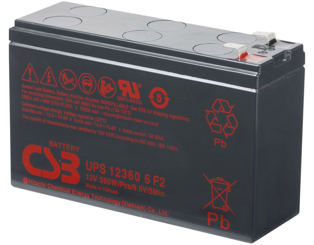 Акумуляторна батарея для джерела безперебійного живлення є невід'ємним елементом, завдяки їй, устаткування продовжує працювати при відключеній електроенергії. Акумуляторні батареї вбудовуються в ДБЖ і практично не вимагають ніякого обслуговування. |