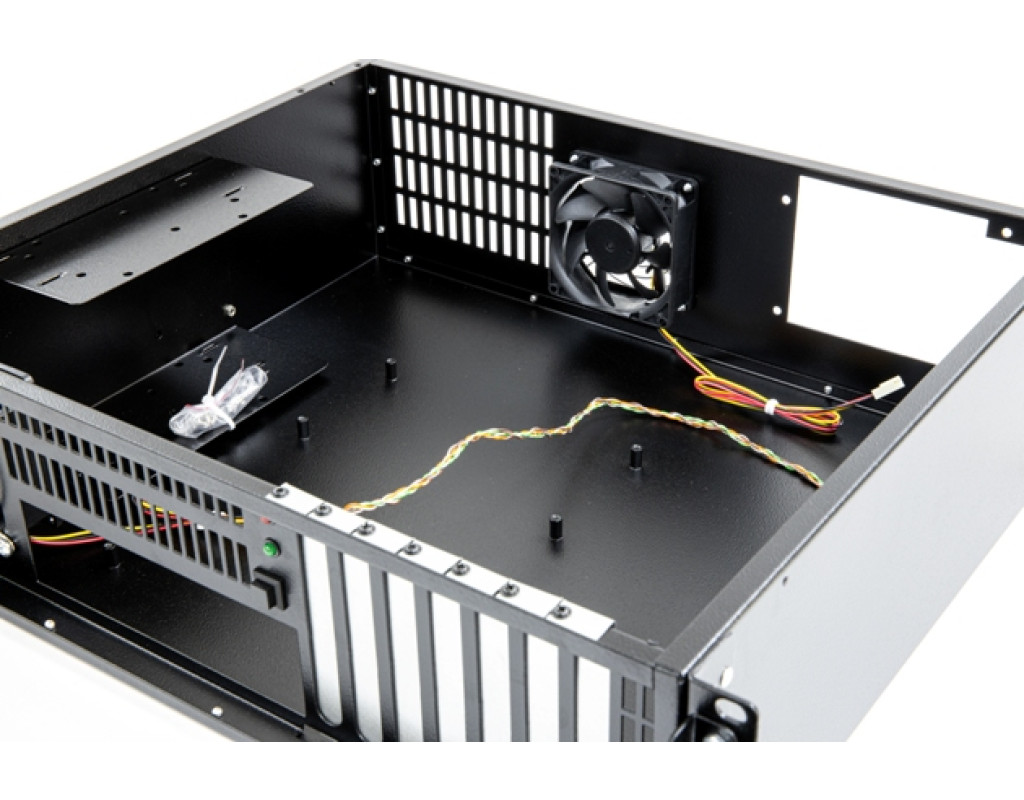 | Корпус CSV 3U-R призначений для збірки серверів початкового рівня з установкою повноформатних плат розширення. Сумісний з материнськими платами формату Micro - ATX, Mini - ITX, Full - ATX. Допускає установку 7 плат розширення. Забезпечує відмінне охолодження всіх компонентів сервера. Основна особливість - розташування всіх роз’ємів материнської плати і плат розширення на передній панелі. Завдяки цьому може встановлюватися в антивандальні бокси і шафи з незнімними бічними стінками. Не потребує додаткового кріплення. Не встановлюється на телескопічні направляючі і жорстке кріплення. Для монтажу потрібно 4 комплекти кріплення гвинт + гайка + шайба (в комплект не входить і замовляється окремо).