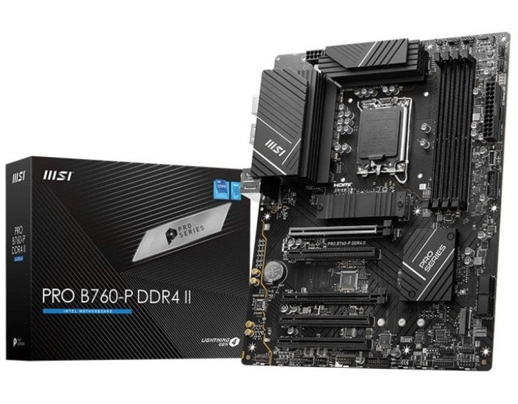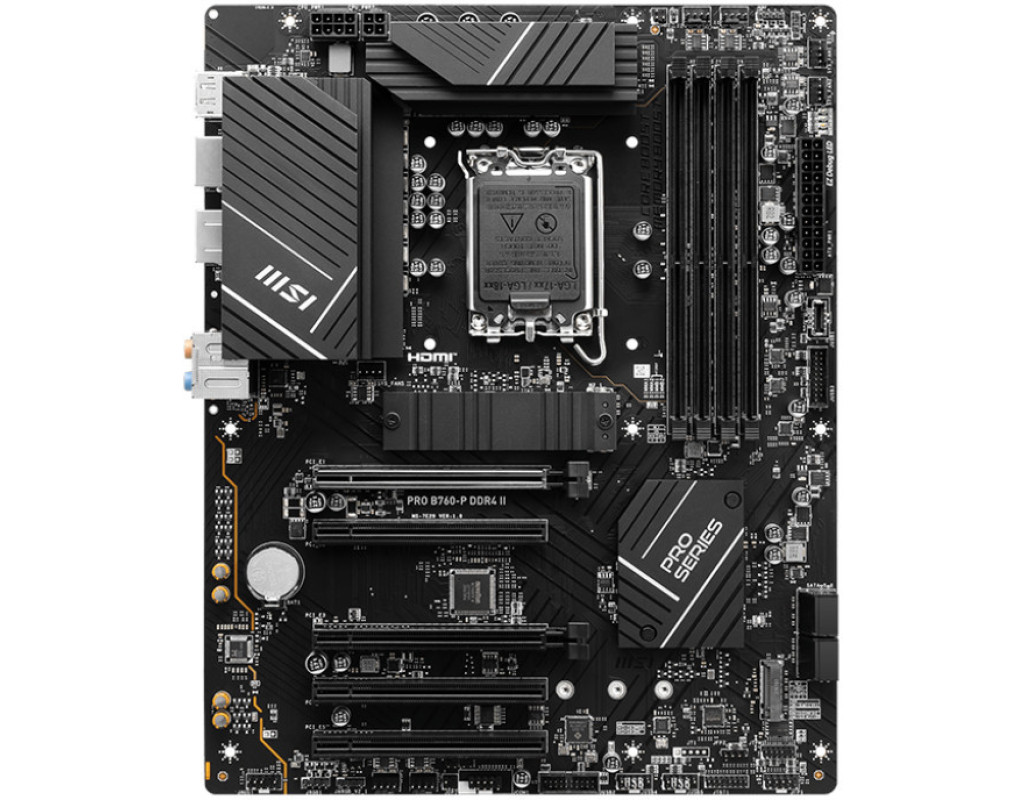 MSI PRO B760-P DDR4 II — материнська плата формфактора ATX, що поєднує в собі високу продуктивність, розширені можливості для комп'ютера та підтримку пам'яті DDR4. Серія PRO створена для професіоналів з усіх сфер життя. Модельний ряд має виняткову продуктивність і високу якість, а також націлений надати користувачам неймовірний досвід. Ті, кому важлива продуктивність і ефективність, безумовно, можуть розраховувати на серію MSI PRO, яка допоможе працювати в режимі багатозадачності та підвищити ефективність. Материнська плата оснащена M.2 Shield Frozr — покращеним рішенням для охолодження, що гарантує безпечну роботу M.2 SSD і неймовірну продуктивність. Також наявний радіатор чипсета, призначений для підтримки високої продуктивності компонента та підключених до нього пристроїв. А високоякісні термопрокладки MOSFET 7 Вт/мК і додаткові термопрокладки дроселя забезпечують стабільну роботу, коли всі ядра працюють на високій швидкості. Особливості: - підтримка процесорів Intel Core 14-го, 13-го, 12-го поколінь, процесорів Intel Pentium Gold і Celeron для роз’єму LGA 1700; |