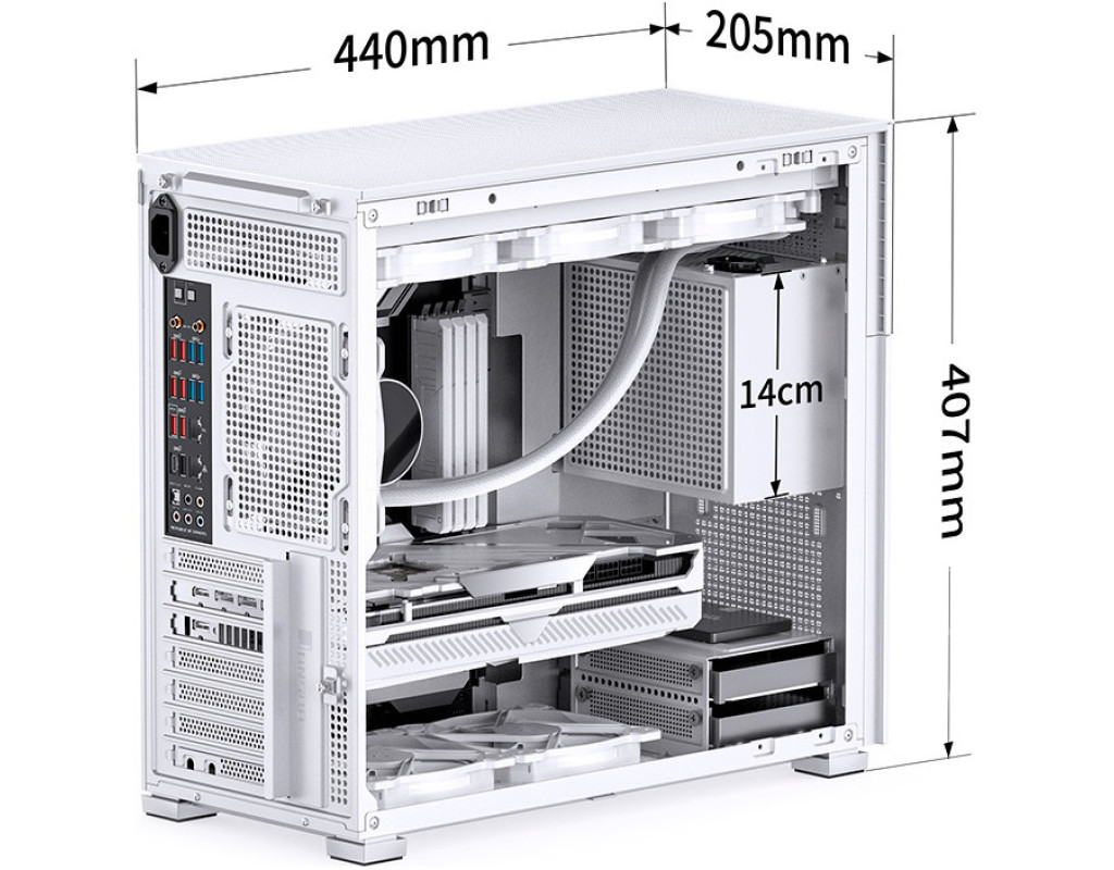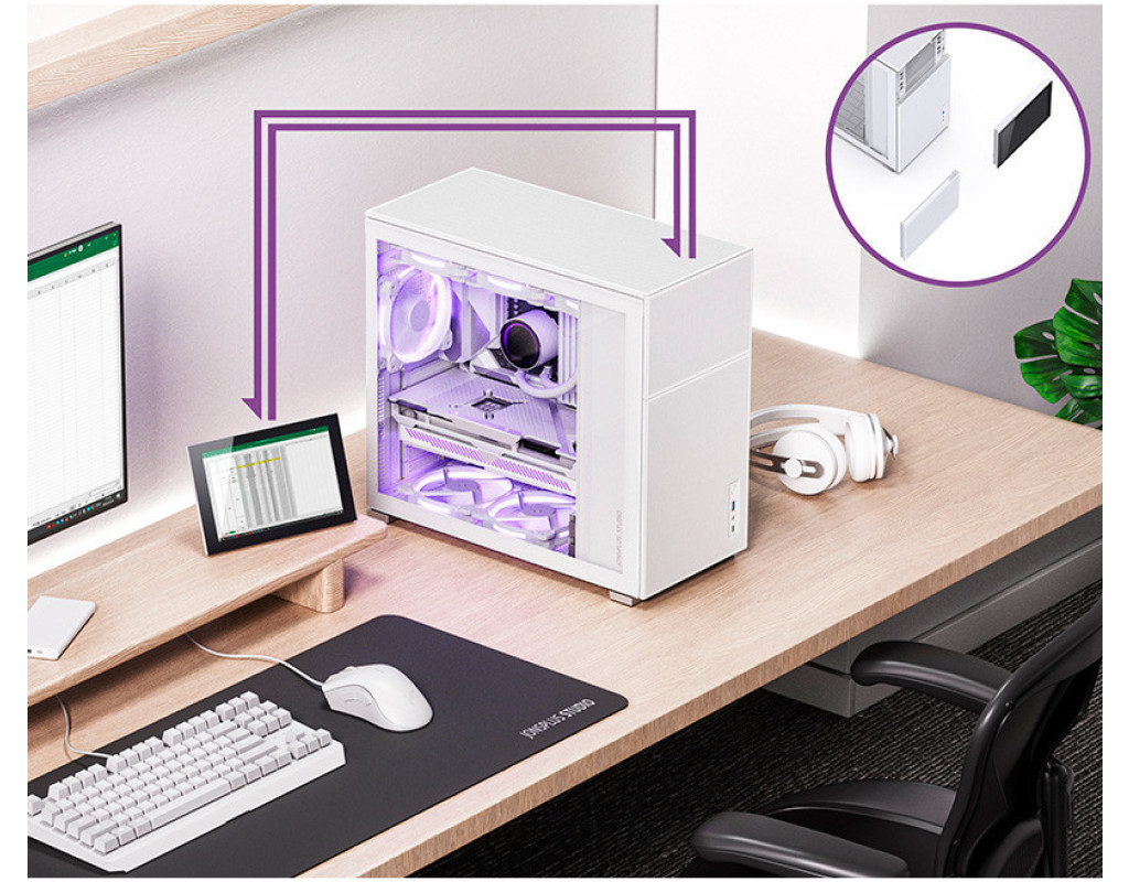 | Корпус для ПК JONSBO D41 MESH SC White - це чудовий вибір для геймерів і ентузіастів, які цінують стиль, функціональність та сучасний дизайн. Створений спеціально для побудови потужних ігрових систем, корпус пропонує низку унікальних переваг, які не залишать байдужими навіть найвибагливіших користувачів. Однією з найвизначніших особливостей JONSBO D41 є вбудований 8" LCD екран з роздільною здатністю 16:10 та 1280x800 пікселів, що робить його не лише естетично привабливим, але й надзвичайно функціональним. Використовуючи програми на зразок Wallpaper Engine, ви зможете оживити вашу систему динамічними заставками, які додають неповторного шарму. Крім того, з вбудованою підтримкою AIDA64 ви отримуєте можливість стежити за апаратними показниками вашого ПК в режимі реального часу, що забезпечує контроль над температурними показниками та стабільністю системи. JONSBO D41 MESH SC White підтримує материнські плати формату ATX та Micro-ATX. Це дає змогу вибрати оптимальний варіант з широкої палітри доступних рішень. Верхнє розташування блоку живлення покращує кабельний менеджмент та сприяє ефективній циркуляції повітря. Хоча корпус постачається без блоку живлення, це дозволяє користувачам підібрати найкращий варіант, враховуючи специфічні потреби системи. Щодо внутрішнього простору, корпус забезпечує можливість встановлення довгих відеокарт до 400 мм і процесорних кулерів висотою до 168 мм. Внутрішні відсіки дозволяють розмістити до трьох накопичувачів формату 2.5" і двох - 3.5", що забезпечує максимально гнучке встановлення систем збереження даних. Для забезпечення оптимального охолодження корпус пропонує встановлення до семи додаткових вентиляторів: один на задній панелі (12 см), три на нижній (трьох 12 см або двох 14 см), три на верхній (трьох 12 см або двох 14 см), а також один спереду (12 см). Корпус підтримує рідинне охолодження, з можливістю розміщення радіаторів до 360 мм на верхній та нижній панелях, що особливо актуально для геймерів, які планують запускати ресурсоємні ігри або додатки. Корпус виконаний у стильному білому кольорі, має прозоре вікно на бічній панелі, яке відкриває вид на внутрішню красу вашої системи. Це підкреслює естетику збірки та дає змогу демонструвати ваше обладнання в усій його пишноті. Компактні розміри корпусу - 205 х 452 х 407 мм та вага 6.8 кг - роблять його ідеальним поєднанням функціональності та стилю без зайвого обтяження вашого робочого місця. Передня панель оснащена зручними зовнішніми роз'ємами: USB 3.0, USB Type C та аудіороз'єм. Це полегшує підключення периферійних пристроїв, забезпечуючи легкий доступ до мультимедійного контенту та швидке обмінювання даними. Отже, JONSBO D41 MESH SC White - це не просто корпус для вашого ПК, це високотехнологічна платформа, що дає змогу реалізувати найсміливіші ідеї геймерів та технічних ентузіастів. Завдяки своєму винятковому дизайну, розширеній функціональності та інноваційним можливостям, він стає ідеальною основою для вашої наступної ігрової системи. |