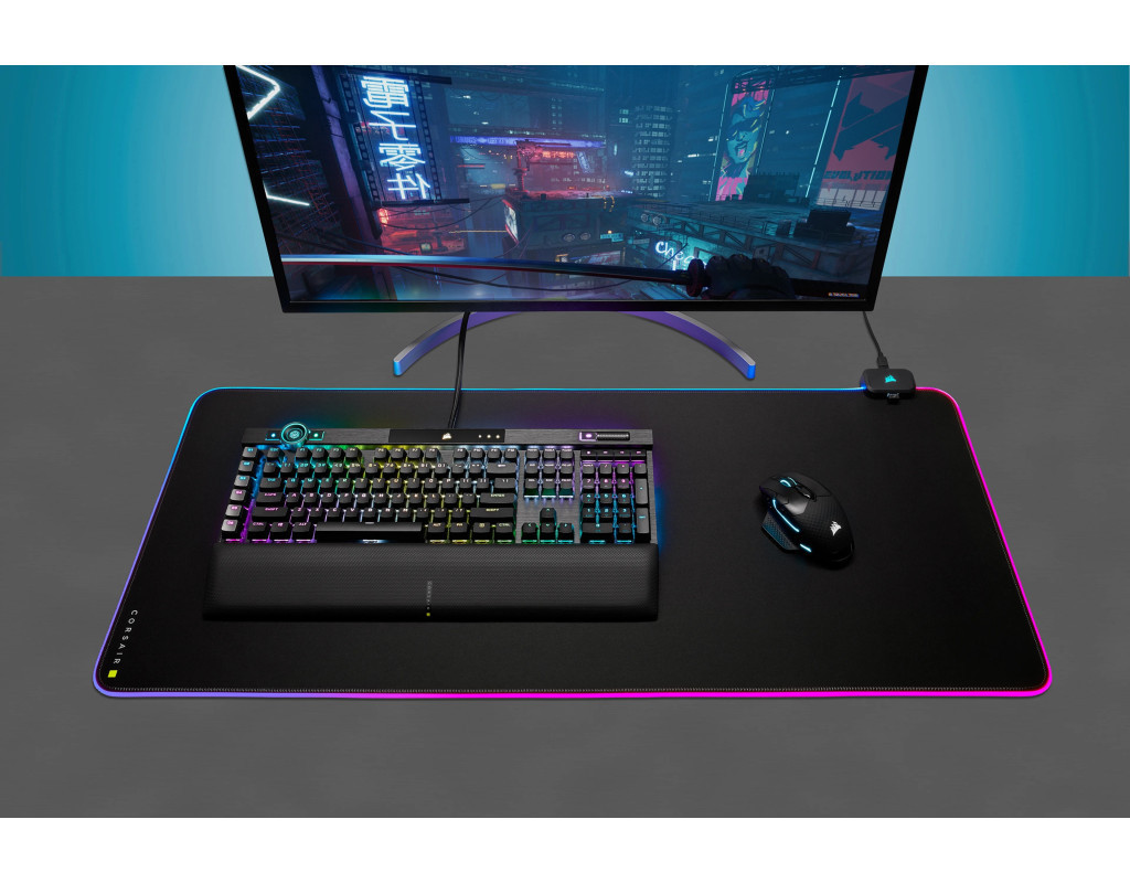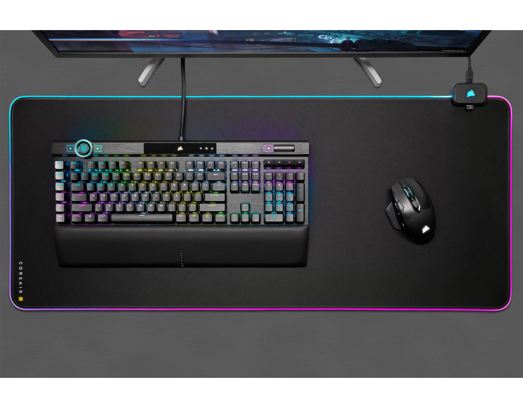 | З ПІДСВІТКОЮ Оточіть ігрову поверхню динамічним тризонним RGB-підсвічуванням на 360°. Перемикайтеся між 12 вбудованими профілями RGB-підсвічування натисканням кнопки для негайного освітлення відразу після підключення або запрограмуйте власні в програмному забезпеченні Corsair iCUE. ОБШИРНІ ІГРИ Покрийте всю ігрову зону великою поверхнею розміром 930 x 400 мм, надаючи достатньо місця для миші, клавіатури та багато іншого. Грайте довше з розкішним комфортом завдяки гумовій основі завтовшки 4 мм, що допомагає згладити нерівності поверхні робочого столу. ПРОСТЕ ПІДКЛЮЧЕННЯ USB-концентратор із двома портами. Зручно розташовані порти USB забезпечують просте підключення додаткових периферійних пристроїв, таких як гарнітура Corsair або миша. З'єднання USB Type-C: легко підключається до ПК або джерела живлення за допомогою кабелю USB Type-C. ВИСОКА ТОЧНІСТЬ Ткана текстильна поверхня з покращеним ковзанням: перемагайте в іграх із чудовим контролем на поверхні, оптимізованої для високопродуктивних ігрових мишей, з відстеженням із низьким коефіцієнтом тертя для точного наведення. Нековзна текстурована гумова основа: надійно утримує килимок для миші на місці навіть під час найінтенсивніших ігрових сесій. |