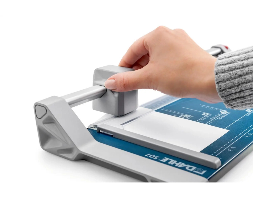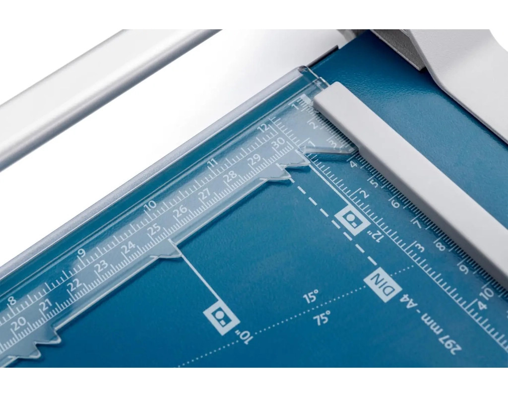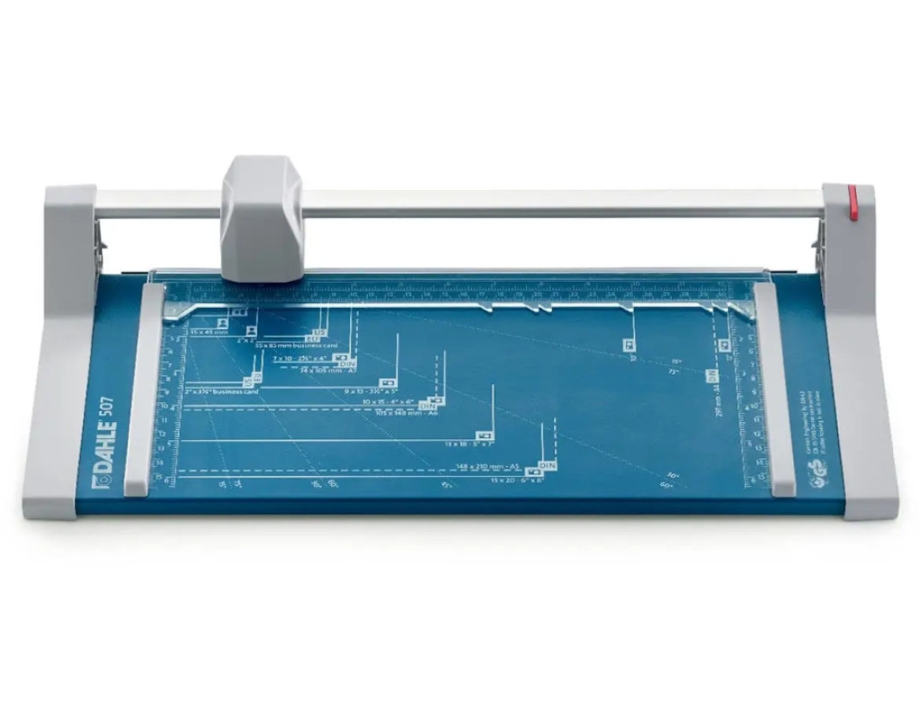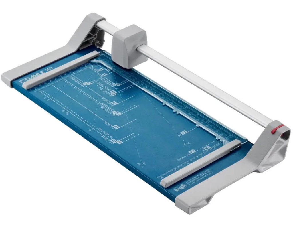 | Різак Dahle 507 нового покоління "Generation 3" для виконання невеликих обсягів робіт по порізці паперу. Довжина різу - 320 мм. Товщина стопи - 0,8 мм. На столі нанесена розмітка стандартних форматів паперу с мм-шкалою, включаючи фото розмір, а також мітки для різу під кутом. Дві напрямні упору для точності при порізці і зручності різання. Дисковий ніж цього різака при різанні щільно притискається до контрлеза, забезпечує процес самозаточування. Можливість різу в обох напрямках вздовж направляючої. Прозора пластикова напрямна щільно притискає папір під час руху ножа, забезпечує автопритиск, точне позиціонування і можливість спостерігати лінію різу в момент розрізання матеріалів. Прозора пластикова напрямна з допоміжним маркуванням форматів - "зубці". Металева основа. Можливість заміни ножа. Опціонально можна укомплектувати змінними ножами: бігування, мікроперфорація, фігурний різ. ТМ Dahle - преміум-клас, різальне обладнання, техніка для офісу та офісні аксесуари. Зроблено в Німеччині! |