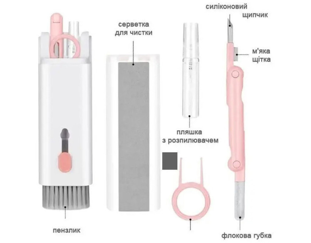 Набір XoKo Clean set 100 для чищення електроніки та гаджетів Особливості: - Набір, який вирішить всі ваші проблеми із очищенням пристрої у важкодоступних місцях - Цей набір для чищення 6-в-1 включає все необхідне для очищення Ваших гаджетів : — щітку для клавіатури; — щітку для очищення отворів; — силіконовий кінчик для чищення навушників та маленьких отворів; — губка з мікрофібри для чищення екрана; — мініпінцет для механічної клавіатури; — ємність з розпилювачем; - Щітка з щільним ворсом дозволить легко очистити клавіатуру від пилу та іншого бруду - Для більш ретельного очищення клавіатури зніміть кнопки, за допомогою зручного мініпінцету, та позбудьтеся бруду в отворах за допомогою силіконового носика - М‘яка щітка та силіконовий носик допоможуть легко очистити бруд з кожного отвору навушника, не пошкодивши чутливі динаміки - А зручна щітка для очищення отворів, легко позбавить кейс від будь-якого бруду - Кейс для зберігання інструментів, обладнаний змінною губкою з мікрофібри, яка швидко і легко очистить від бруду та відбитків екран вашого смартфона, чи інших гаджетів - Розмір: 143х44х28 мм |