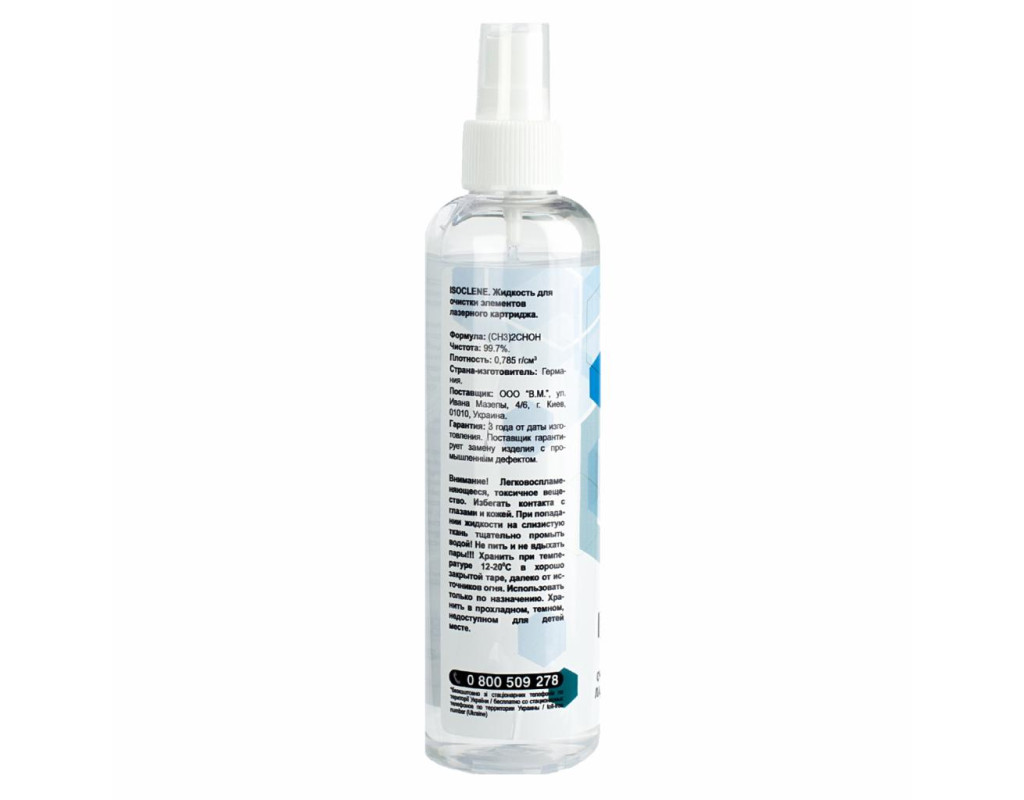 Призначення - для очищення компонентів лазерних картриджів, об'єм - 250 мл