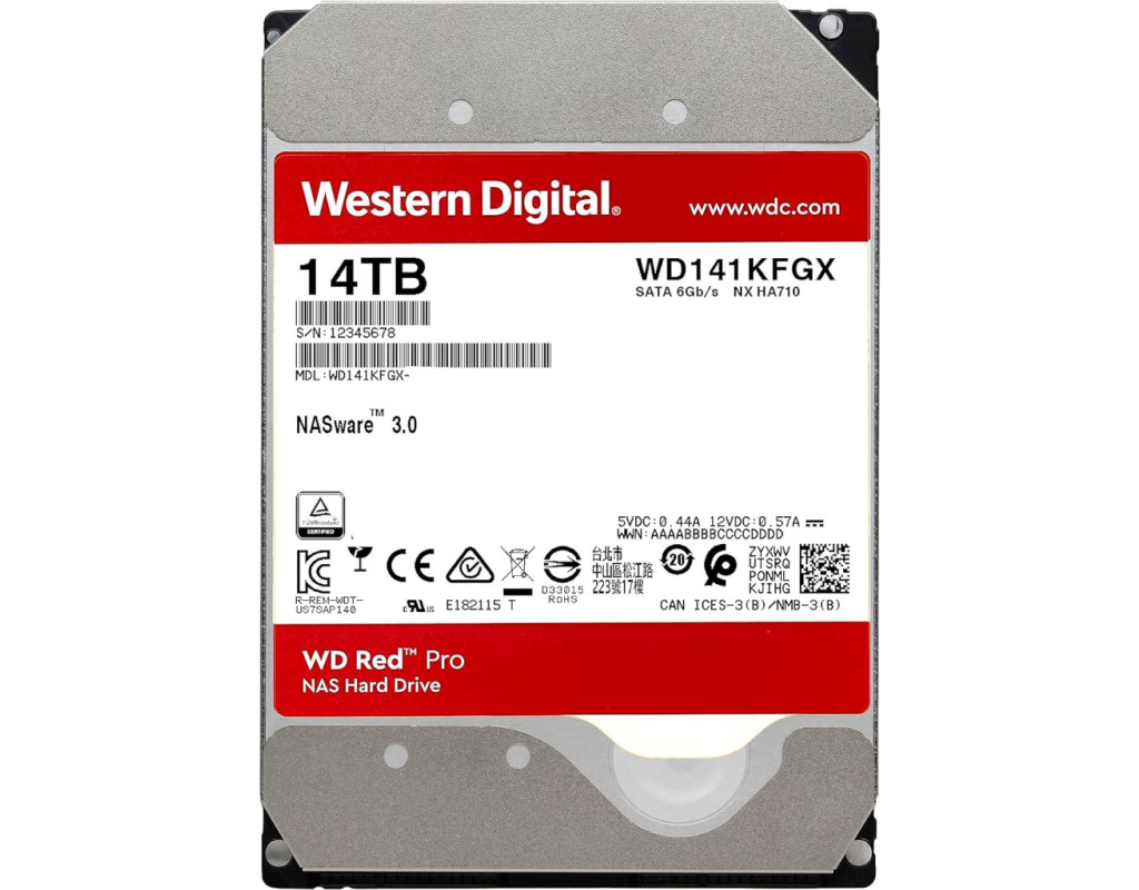14 TB, 7200 об/хв, 512 MB, SATA III, 3.5", WD Red Pro, 265 Мбіт/сек, 10 Вт