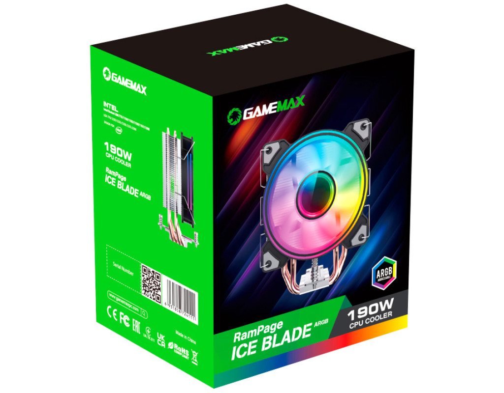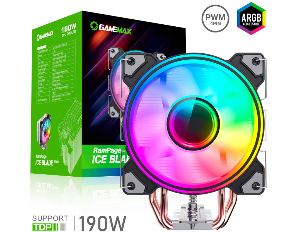 Gamemax Ice Blade ARGB — відмінний кулер для продуктивного процесора. Має RGB-підсвітку вентилятора, який можна зняти при необхідності очищення. Виріб виглядає яскраво та стильно доповнить геймерський ПК. Підходить майже на всі сокети. Швидкість обертання кулера складає 600-1600 об / хв. Теплові трубки покращують відведення тепла. Вони знаходяться в прямому контакті з процесором, що забезпечує ефективну і швидку передачу тепла для максимального відведення тепла. |