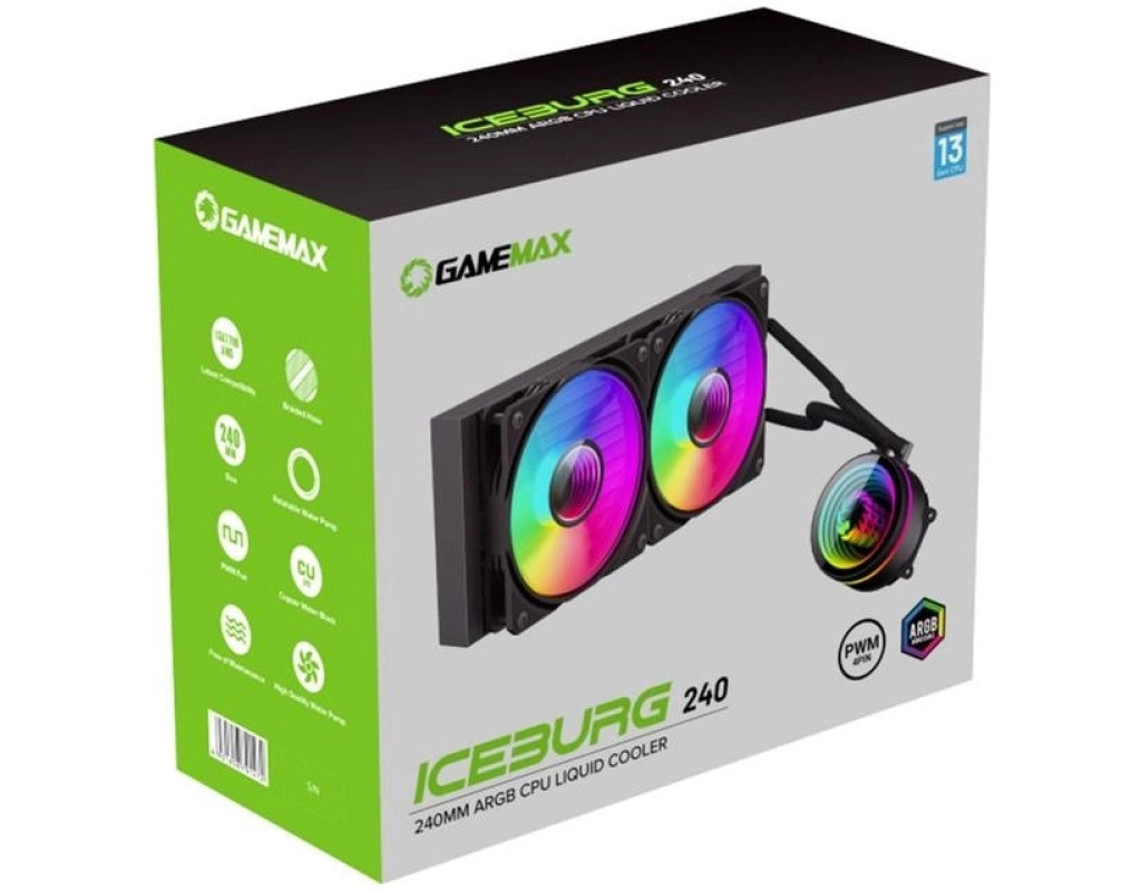 GameMax ICEBURG 240 Infinity, рідинний процесорний кулер, 240-міліметровий насос з RGB і ШІМ і вентилятори, 250 Вт TDP AIO водяний кулер для Intel LGA 1700/1200/115X AMD AM5/AM4. |