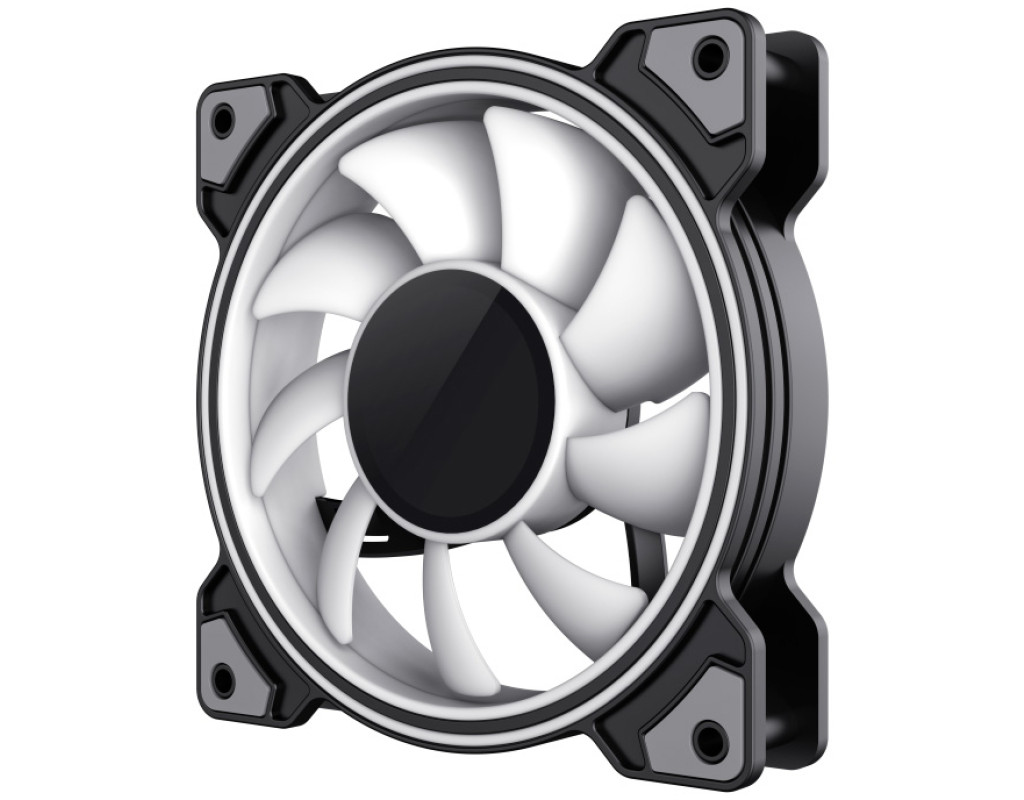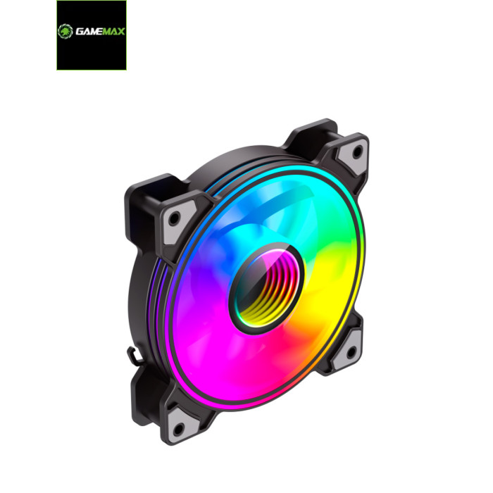 Вентилятор для охолодження "заліза" ПК від компанії Gamemax. Призначений для охолодження "начиння", шляхом видування гарячого повітря. Вентилятор оснащений RGB-підсвіткою, яка знаходиться у двох колах, розміщених над кулером. Під час активної роботи (а це 1200 обертів за хвилину), пристрій створює вібрацію. Для того, щоб вентилятор створював менше шуму, виробник оснастив його антивібраційними подушками. Вентилятор має широкі лопаті, які захоплюють велику кількість гарячого повітря. Виготовлений кулер зі зносостійкого пластику. Рамка та лопаті виконані в білому кольорі. Підсвітка не тільки підсилює дизайн пристрою, але і виконує освітлювальну функцію, коли користувач працюватиме чи гратиме в темний час доби. |
