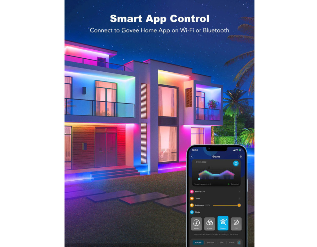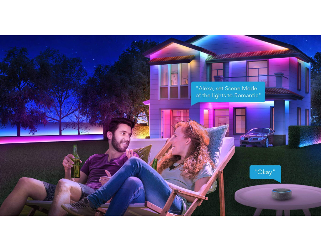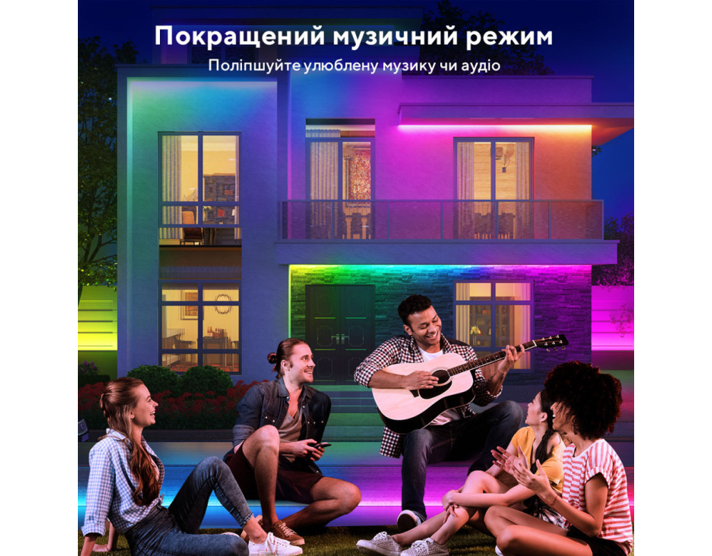 | Підніміть будь-який відкритий простір на новий рівень за допомогою вуличних стрічкових RGBIC-світильників. Створюйте приголомшливі ефекти та обирайте з мільйонів кольорів, щоб зробити двір, патіо та інші приміщення яскравішими.