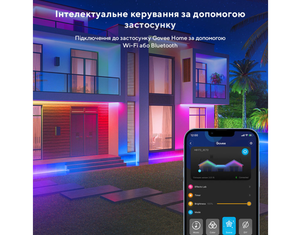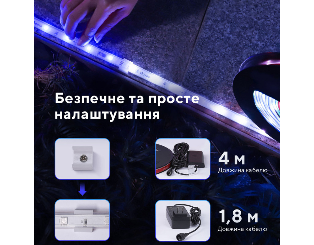 Голосове керування Smart Voice Control дає змогу керувати освітленням без допомоги рук. Сполучіть свої зовнішні світильники з Alexa і Google Assistant, щоб регулювати кольори, яскравість і багато іншого. Сегментний колір RGBICСтворіть освітлення, унікальне для вашого відкритого простору. Кожен сегмент стрічки може одночасно відображати 15 різних кольорів, що дає змогу використовувати освітлення більш творчо. Вибирайте з 16+ мільйонів кольорів, щоб зробити освітлення своїм власним. Водонепроникна конструкція IP65Чи то легкі бризки з басейну, чи то легкий туман із розбризкувачів, ваші світильники працюватимуть у будь-який час. Зверніть увагу, що адаптер не є водонепроникним. Творчий музичний режимНаші світлодіодні стрічки оснащені надчутливим вбудованим мікрофоном, який дає змогу їм плавно синхронізуватися з музикою. Ви також можете вибрати ефекти музичного режиму в додатку Govee Home App. Принесіть більше радості на вечірку біля басейну або сімейні збори. Функція таймераЗавдяки функції таймера ви можете додати освітлення до свого розпорядку дня. Запрограмуйте автоматичне вмикання/вимикання світлодіодних світильників через додаток Govee Home App. З власним розкладом освітлення ви завжди повертатиметеся в яскраво освітлений дім. |