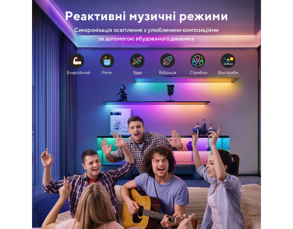 Світлодіодні стрічки Govee RGBIC Pro сумісні з Alexa і Google Assistant для зручного голосового керування. Налаштуйте кольори освітлення та багато іншого, не поворухнувши пальцем. Індивідуальне керування сегментамиІнноваційна технологія RGBIC дає змогу налаштовувати кожен сегмент стрічки окремо. Ви можете керувати яскравістю, музичними режимами, кольорами та ефектами за допомогою програми Govee Home App. Можливості програми Govee Home AppЗастосунок Govee Home App відкриває доступ до безлічі цікавих функцій для ваших світильників, включно з 64+ попередньо встановлених сюжетних режимів і функцією музичного режиму. Є понад 16 млн. варіантів кольорів, придатних для будь-якого випадку. Адаптація для великих свят та інших заходівВлаштовуєте ви вечірку з нагоди дня народження, святкуєте Різдво або проводите годинний захід - світлодіодні стрічки Govee прикрасять ваше оточення цілющими квітами. Світло, яке танцює разом із вамиЗавдяки вбудованому в блок керування мікрофону стрічкові гірлянди можуть підхоплювати ритми вашої улюбленої музики. Також можна використовувати додаток Govee Home App для доступу до різних музичних режимів, щоб налаштувати кольори та світлові ефекти. |