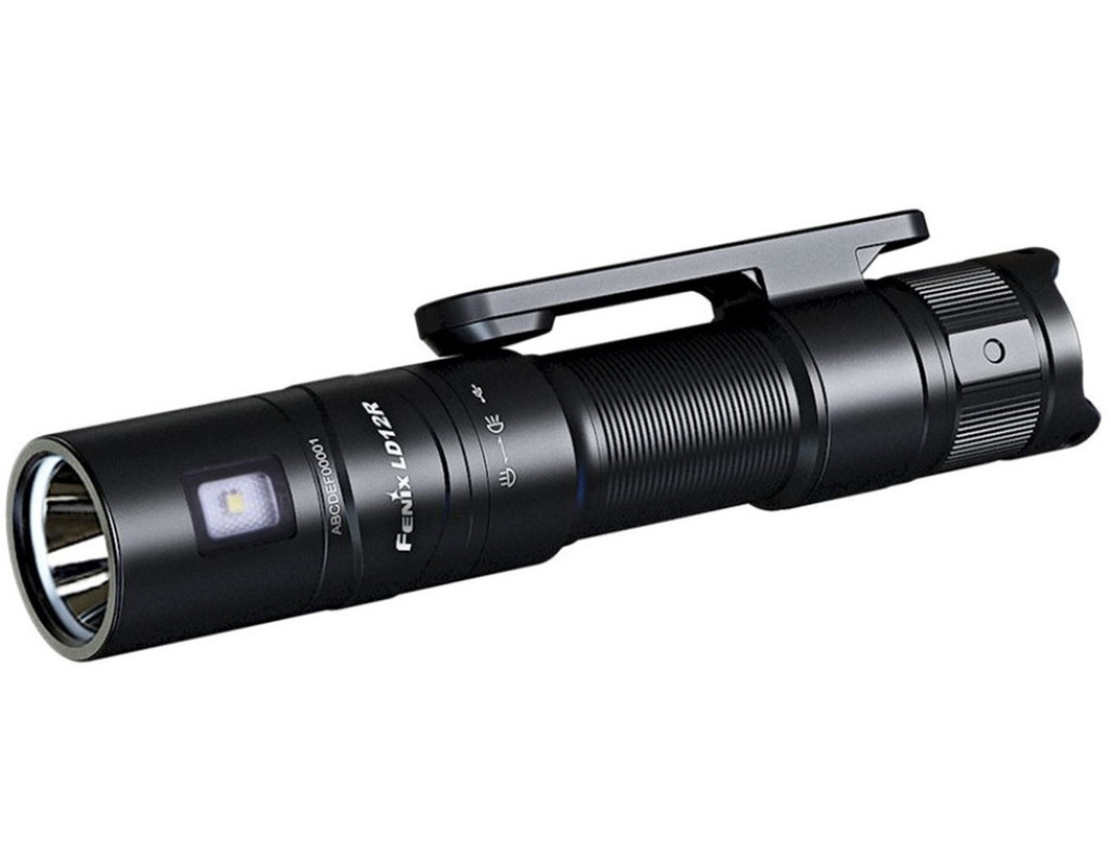 Ліхтар типу EDC, Fenix LD12R, — це мініатюрний помічник в освітленні закритого приміщення або невеликого відкритого простору під час відпочинку на природі. Функціональність моделі забезпечують два світлодіоди, розміщені з різних боків корпусу: основний Luminus SST20 з колірною температурою 6500К та бічний SC1818C. Термін служби обох діодів становить щонайменше 50 тисяч годин. Яскравість основного світлодіода досягає 600 люмен, при цьому дальність променя становить 186 метрів. За допомогою фірмового дифузора Fenix AOD-S V2.0 світло можна зробити розсіяним і використовувати ручний ліхтар як кемпінговий аналог. Режими роботиДоступні варіанти освітлення діляться на 2 групи: основне та бічне світло. Основне освітлення