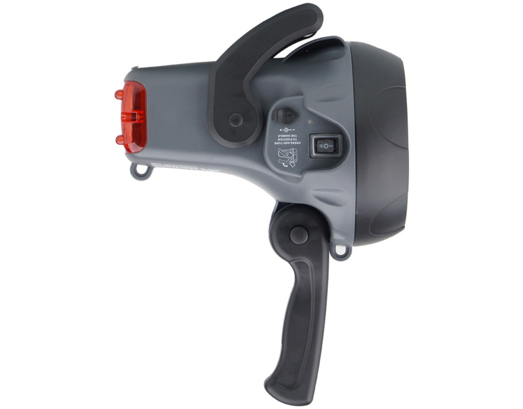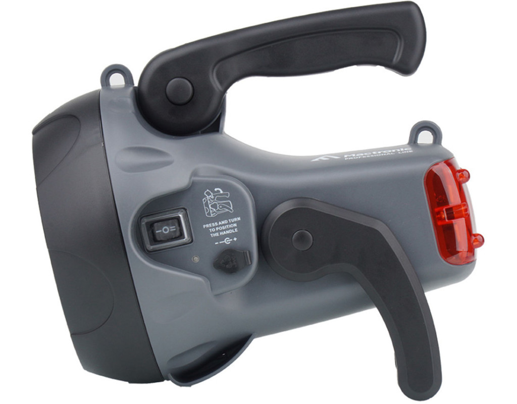 Mactronic Vanguard JML (1600 Lm) White/Red LED Rechargeable це потужний пошуковий ліхтар, що створює вузький сфокусований промінь світла, здатний освітлювати територію на відстані до 800 м протягом трьох з половиною годин. Продуманий корпус ліхтаря обладнаний розкладними ручками різних типів з двох сторін для найбільш зручного хвату під час користування, а також для стаціонаргого встановлення під потрібним кутом. Відмінний вибір для співробітників охоронних і силових структур, мисливців та всіх, хто займається пошуковими роботами. Особливістю цього ліхтаря є 2 режими роботи, що змінюються завдяки повністю захищеному від потрапляння вологи перемикачу. Перший режим - це потужний промінь білого світла, а другий режим - червоне миготливе світло для подачі помітних сигналів в темний час доби. Mactronic Vanguard JML обладниний сучасним світлодіодом Cree™ XHP50, що має потужність 20W, ресурс понад 50000 годин і номінальний світловий потік не менше 1600 люмен на виході з ліхтаря. Корпус має 2 петлі для кріплення плечового ременя, що надзвичайно зручно при тривалому користуванні. Вбудована акумуляторна батарея Li-ion 7.4V, 6600mAh забезпечує 3 години 30 хв безперервної роботи в режимі пошукового світла. Модель Mactronic Vanguard JML має необхідну сучасну захисну електроніку та ряд конструкційних рішень, що дозволяє вберегти ліхтар від короткого замикання, перегріву, механічних пошкоджень або потрапляння вологи всередину. Корпус цієї моделі, виконаний з ударостійкого пластику, забезпечує вологозахист за стандартом IPX4 (захист від водяних бризок з будь-якого напрямку) і ударостійкість при падінні з висоти до 1 м на бетон. Тобто ліхтар не боїться дощу чи випадкового падіння на землю. Ліхтар заряджається одним з блоків живлення 220 V AC і 12 V DC, що йдуть в камиплекті. Тобто є змога підзарядити пристрій навіть в дорозі від автомобільного прикурювача. Зелене світло світлодіода біля зарядного отвору на ліхтарі просигналізує про повний заряд акумулятора. Час до повної зарядки від 10 до 20 годин в залежності від стану акумулятора та виду зарядного пристрою. Технічні характеристики: