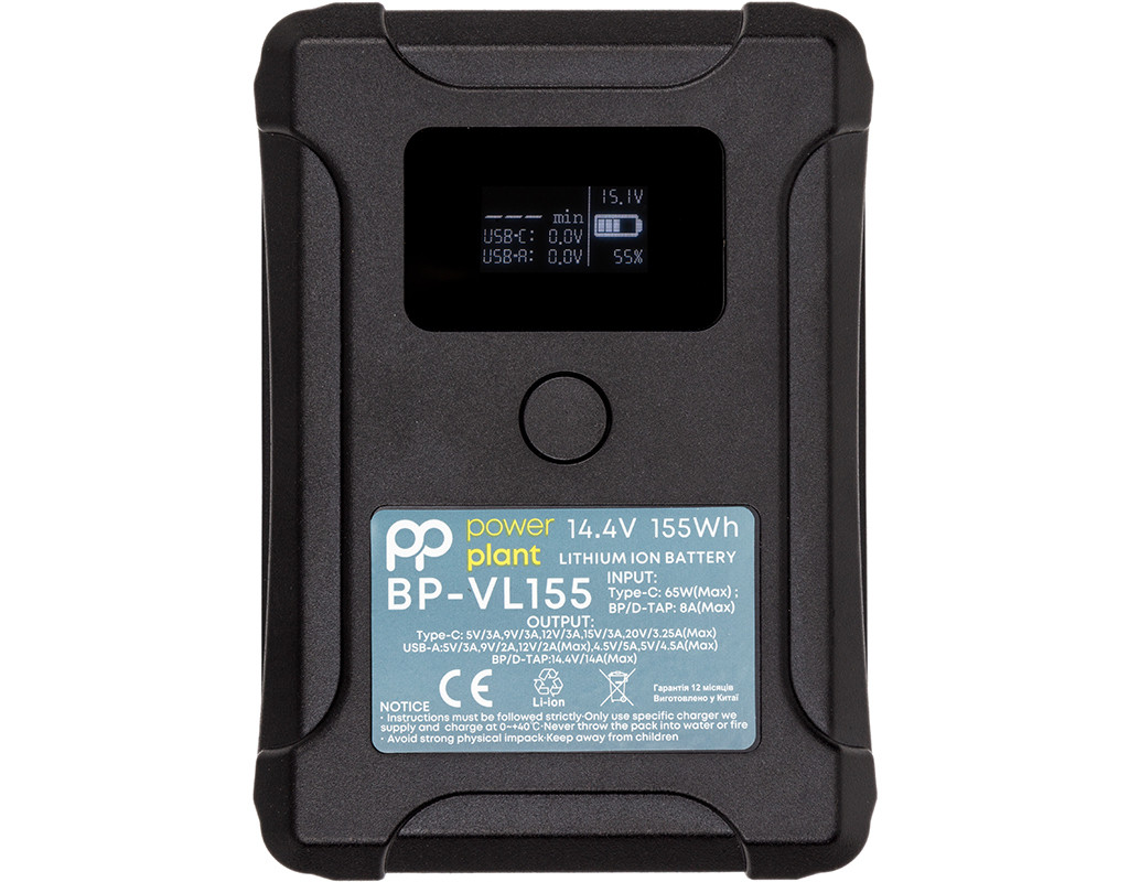 Змінний акумулятор для Sony BP-VL155 10500mAh. Він також може використовуватися як Power bank для заряджання широкого спектра пристроїв із PD 65W, швидкою зарядкою QC3.0, через роз'єми USB Type-C і USB Type-A (телефони, ноутбуки, планшети, електронні пристрої, світлодіодні лампи тощо). Має два порти D-TAP. Особливості: Підтримує протоколи: PD3.0, QC2.0, QC3.0, AFC, FCP, SCP, Apple-2.4A, PPS. Зі світлодіодним екраном, кнопкою ввімкнення/вимкнення, захистом з'єднання. Інтелектуальна система управління автоматично підлаштовує напругу або струм, роблячи роботу пристрою більш стабільною. Відсутній "ефект пам'яті". Низький рівень саморозряду. Тривалий термін служби акумулятора. Характеристики: - Ємність: 10500mAh.