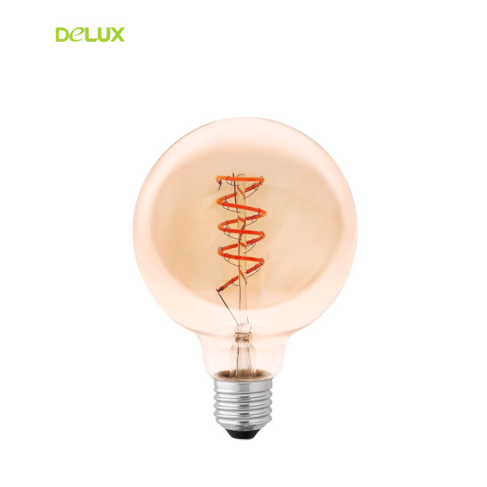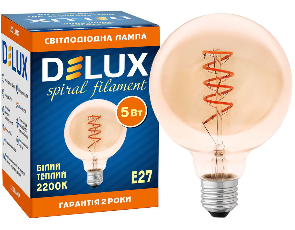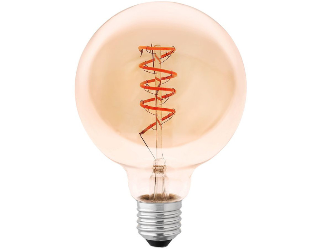 | Світлодіодна лампа — енергоощадне джерело світла на основі сучасних технологій. Оригінальний дизайн світлодіодів у формі нитки розжарювання та бурштинова колба лампи сприяють створенню ретроатмосфери. |