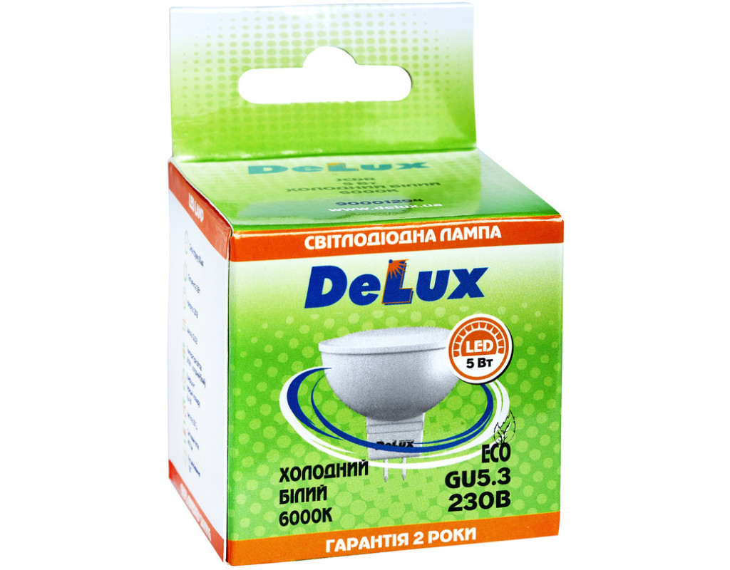 Головною особливістю світлодіодних DeLux ламп є мале енергоспоживання й тепловипромінювання, водночас термін експлуатації набагато більший, ніж у звичайних ламп розжарювання. Однією з основних переваг світлодіодних ламп є екологічність, на відміну від звичайних, а саме: у них практично немає ІЧ та ультрафіолетового випромінювання й на відміну від люмінесцентних ламп, вони не виділяють пари ртуті. Загалом перешкодою для масового впровадження світлодіодних ламп є ціни на світлодіодні лампи, хоча вони з кожним роком усе нижчі, а асортимент ширший та доступніший. Світлодіодні лампи DeLux використовують для освітлення як вуличних елементів, так і домашнього інтер'єру. Саме світлодіодні лампи стають основою світлової реклами на вулицях і метро, неонових вивісок і так далі. Дуже добре підходять і для освітлення офісів і приміщень, з огляду на їхню економність і довговічність, а також для світлового оформлення інтер'єру. Світлодіодні лампи DeLux це те, що потрібно, якщо Ви хочете мати якісне і безпечне світло у домі, але не бажаєте переплачувати за електроенергію. Основні характеристики: