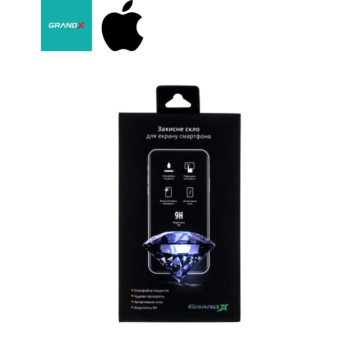 Скло Grand-X захистить від зовнішніх впливів, таких як подряпини, удари, жир. У склі застосовуються передові технології: олеофобне покриття, загартування скла, округлі краї скла в горизонтальній площині. Олеофобне покриття мінімізує сліди від пальців. Жорсткість скла відповідає класу 9H , це стало можливим завдяки застосуванню методу загартування. Рівень прозорості сягає майже 100%. Встановлюється скло дуже просто, в комплекті є все необхідне (серветка для знежирення екрану, мікрофібра та спеціальний папір для зняття пилу). Після встановлення скло надійно з'єднується з екраном пристрою і передає ваші торкання точно і швидко. особливості: