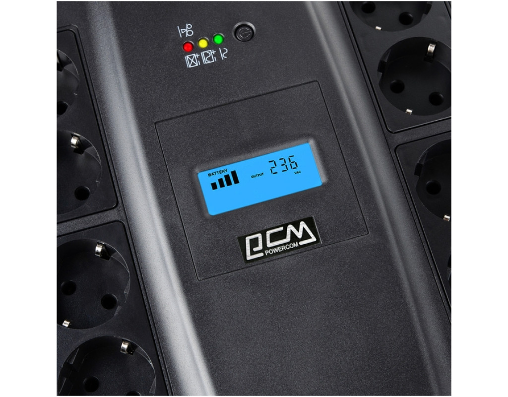 Powercom SPD-750U призначена для захисту персональних комп'ютерів спільно з монітором, мережевих комутаторів, роутерів та іншого обчислювального та телекомунікаційного обладнання від основних неполадок з електроживленням: навантаження або короткого замикання, знижень, підвищень та повного зникнення напруги в електромережі. Завдяки великій кількості вихідних євророзеток ДБЖ серії SPIDER забезпечать підключення всієї необхідної комп'ютерної, побутової техніки в офісі або вдома. ДБЖ POWERCOM серії SPIDER SPD-750U LCD USB дозволяє підключити до 8 пристроїв одночасно через роз'єми Schuko. 4 розетки мають батарейну підтримку, а 4 додаткові без батарейної підтримки, але з фільтрацією для безпечного підключення, наприклад, лазерного принтера або копіра. Вбудований стабілізатор напруги (AVR) підтримує вихідну напругу в межах норми, не використовуючи ресурс акумулятора під час коливання напруги електромережі. Комунікаційний порт USB для зв'язку з комп'ютером дозволить своєчасно завершити роботу системи із збереженням даних. Функція холодного старту дає можливість увімкнути обладнання навіть за відсутності напруги у мережі. Гаряча заміна АКБ забезпечує можливість безпечної заміни батареї, що відпрацювала свій ресурс, без відключення ДБЖ і навантаження. Ця модель оснащена USB-портом 2.4А для заряджання від нього телефону або інших аксесуарів, смарт-гаджетів. Ступінь захисту: