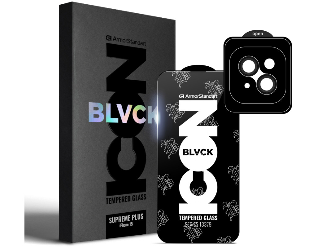 Скло захисне Armorstandart Supreme Plus Black Icon Apple iPhone 15 (ARM71137)
