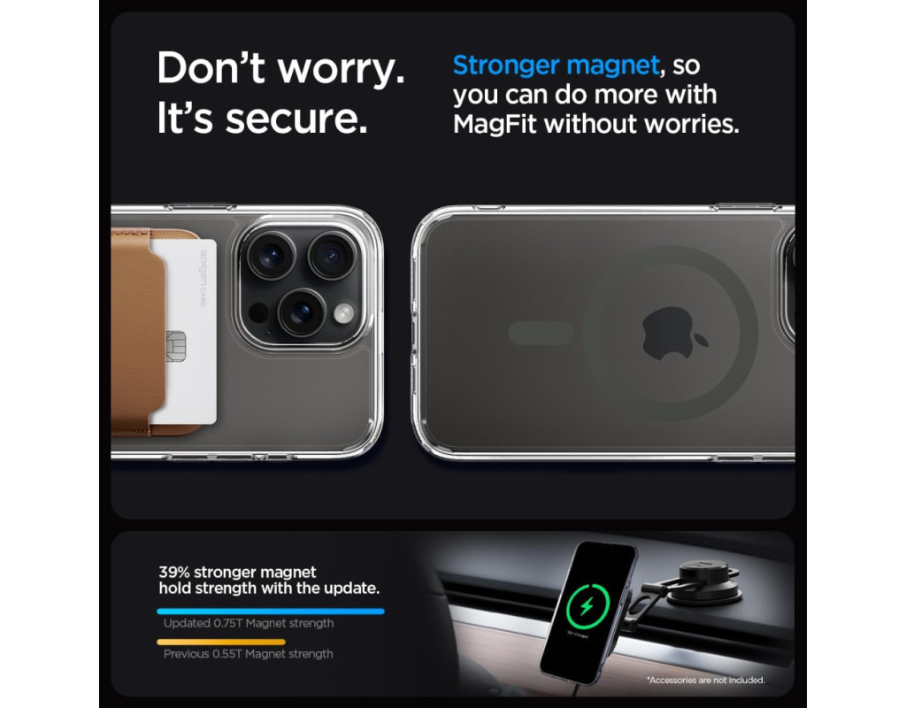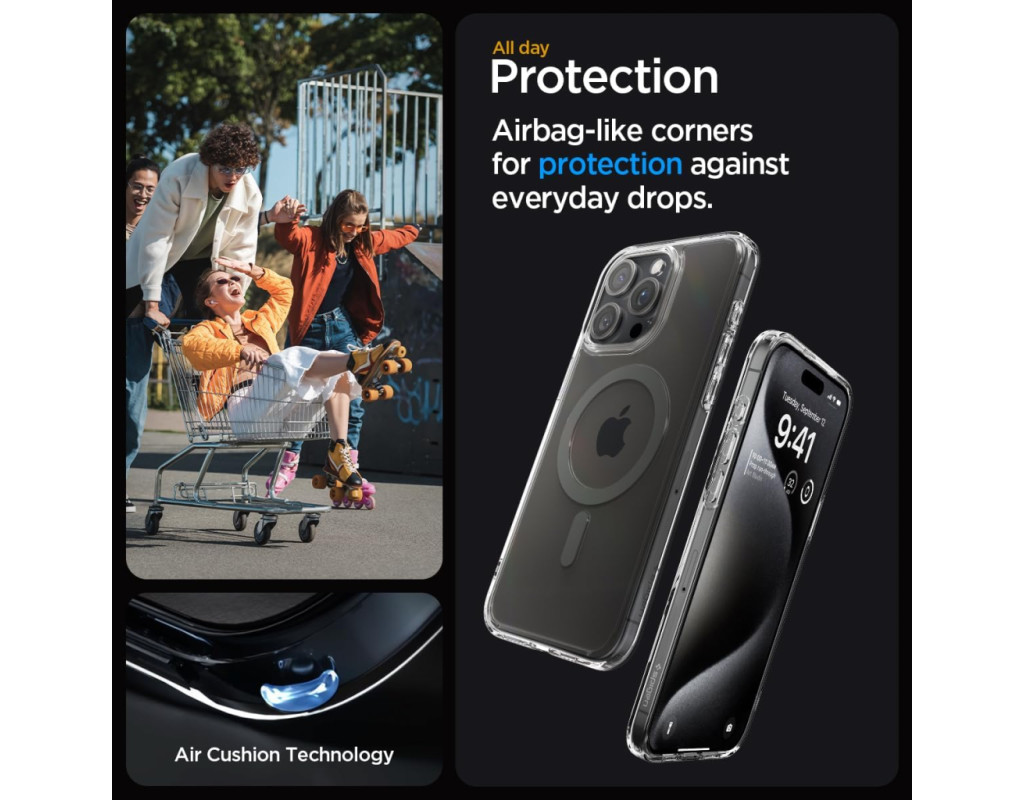 | Прозора серія Ultra Hybrid Mag Safe поєднує в собі амортизуючий гнучкий бампер з жорсткою спинкою для забезпечення максимального захисту і кольорове магнітне кільце, розроблене спеціально для MagSafe Кришталево чиста задня частина, призначена для збереження первинного зовнішнього вигляду телефону без пожовтіння з плином часу Кути охороняються за допомогою Air Cushion Technology®, яка повністю захищає від повсякденних ударів.Підтримує заряд через Magsafe завдяки магнітному кільцю. |