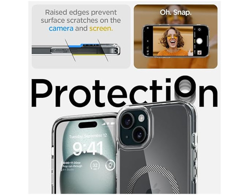 | Прозора серія Ultra Hybrid Mag Safe поєднує в собі амортизуючий гнучкий бампер з жорсткою спинкою для забезпечення максимального захисту і кольорове магнітне кільце, розроблене спеціально для MagSafe Кришталево чиста задня частина, призначена для збереження первинного зовнішнього вигляду телефону без пожовтіння з плином часу Кути охороняються за допомогою Air Cushion Technology®, яка повністю захищає від повсякденних ударів.Підтримує заряд через Magsafe завдяки магнітному кільцю. |