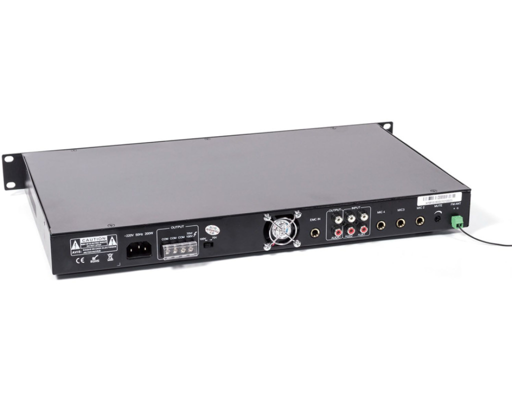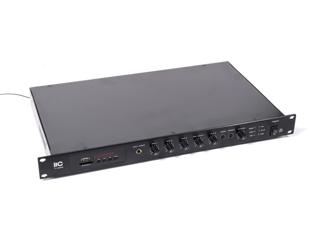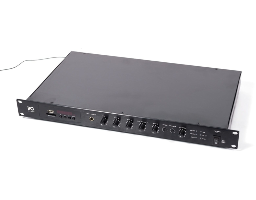 Мікшуючий підсилювач з MP3/TUNER/Bluetooth для відтворення фонової музики в невеликих і середніх приміщеннях, таких як невеликі і середні супермаркети, торговельні та розважальні центри, ресторани і кафе.