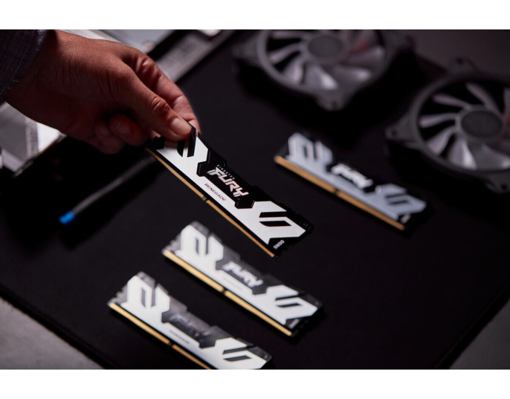 Оперативна пам'ять Kingston FURY Renegade DDR5 призначена для максимального підвищення продуктивності сучасних ПК в іграх, а також задачах стримінгу, редагування відео високої роздільної здатності, рендерингу та інших ресурсоємних програм. Оснащена алюмінієвим радіатором чорного кольору пам'ять сумісна з усіма платформами, що підтримують DDR5. Крім стандартного профілю JEDEC пам'ять має три XMP 3.0 профілі. Забезпечує створення контенту, багатозадачність та максимальну продуктивність у новітніх іграх, пам'ять Kingston FURY Renegade DDR5 – ідеальний вибір для геймерів, ентузіастів, творців контенту та екстремальних оверклокерів. Збільшуючи швидкість, ємність та надійність, Kingston FURY Renegade DDR5 пропонує цілий арсенал розширених функцій, таких як ECC на кристалі (ODECC) для підвищення стабільності на екстремальних швидкостях, два 32-бітових підканали для підвищення ефективності та інтегрована в модуль схема управління живленням (PMIC) , що забезпечує контроль та підстроювання напруг безпосередньо на модулі пам'яті. При грі в найекстремальніших умовах, при стрімінгу у форматі 4K і вище або при серйозній анімації та 3D-рендерингу, Kingston FURY Renegade DDR5 – це наступне підвищення рівня, при якому ідеально поєднуються стиль та продуктивність. Пам'ять Kingston FURY Renegade DDR5 була протестована та схвалена провідними світовими виробниками материнських плат. Пам'ять Kingston FURY Renegade DDR5 отримала сертифікати Intel XMP 3.0-Ready та Certified, що означає, що користувачі можуть розраховувати на простий, стабільний та сертифікований розгін. Крім того, нова функціональність дозволяє зробити налаштування пам'яті ще зручнішою завдяки двом вбудованим профілям частот та таймінгів, в які користувач може записати свої власні налаштування. Особливості:
