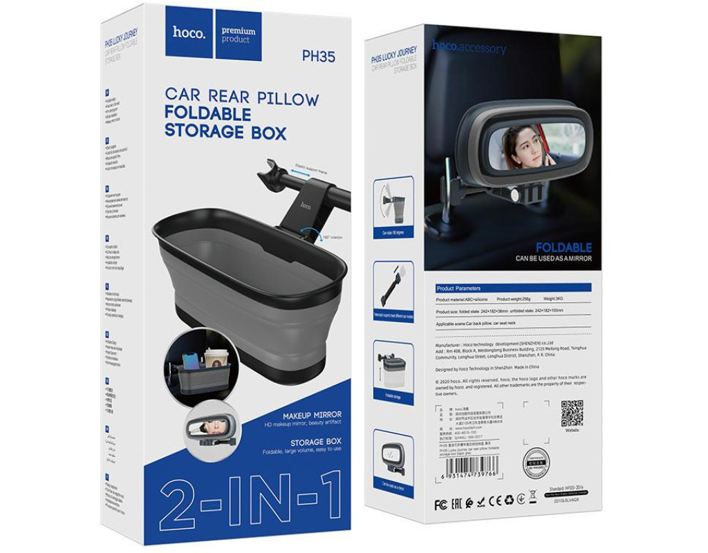 | PH35 Автомобільний ящик Lucky journey для кріплення на підголівник, складний, з дзеркалом. |