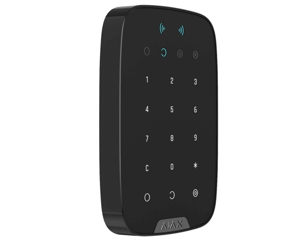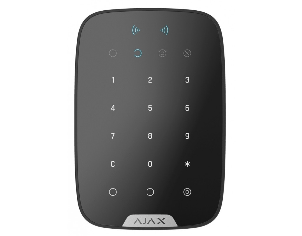 Бездротова сенсорна клавіатура Ajax Keypad Plus black з підтримкою захищених безконтактних карток Pass і брелоків Tag, для системи охоронної сигналізації. Бренд Ajax ПРИЗНАЧЕННЯДана клавіатура використовується для постановки / зняття з охорони системи безпеки Ajax за допомогою карти Pass або брелока Tag, натисканням кнопки або введенням цифрового коду. ФУНКЦІОНАЛ КЛАВІАТУРИ Keypad Plus black
